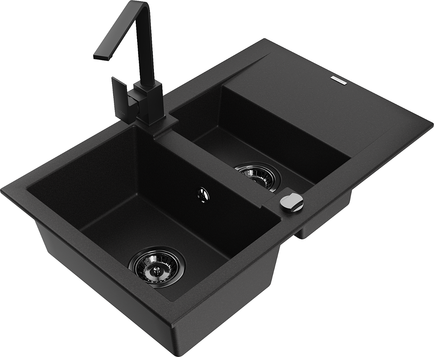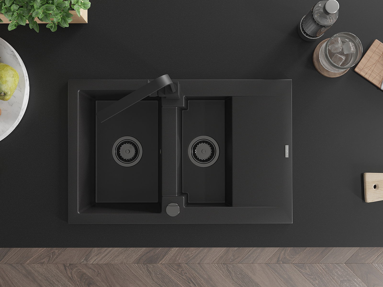 Mexen Gaspar Granit-Spullsteng 1,5-Lach mat Oflaaf a Kichenhahn Rita, schwaarz - 6507-77-670300-70-B