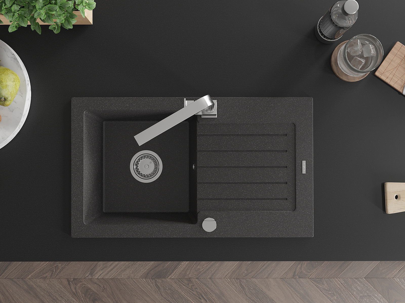 Mexen Pablo Granitspullsteen mat 1 Bessioun mat Drëpsteen an Kichekraan Rita, schwaarz gesprenkelt - 6510-76-670300-00