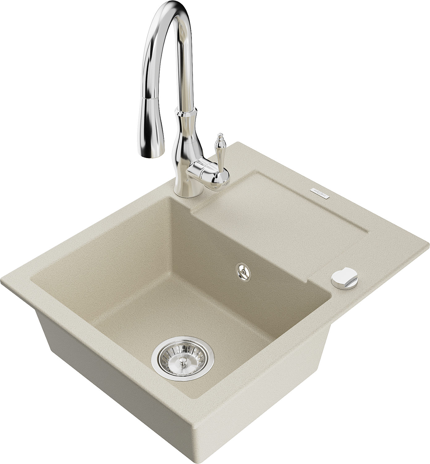 Den Ëmwäschbecken ass aus héichwäertege Granit gemaach. Et stellt eng elegant awer virun allem praktesch Ergänzung fir all Kichen duer, onofhängeg vun hirem Stil. Déi héich Qualitéit an Haltbarkeet vum Granit suergen fir méi järelaang Benotzung.