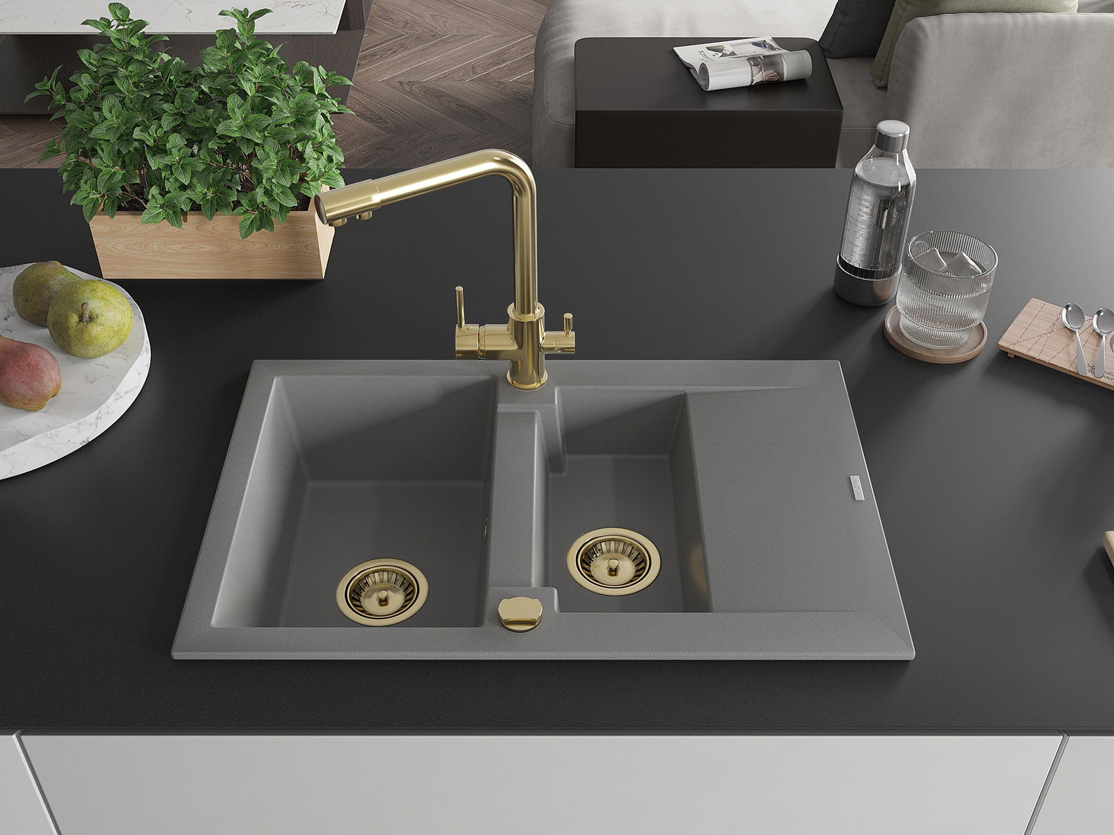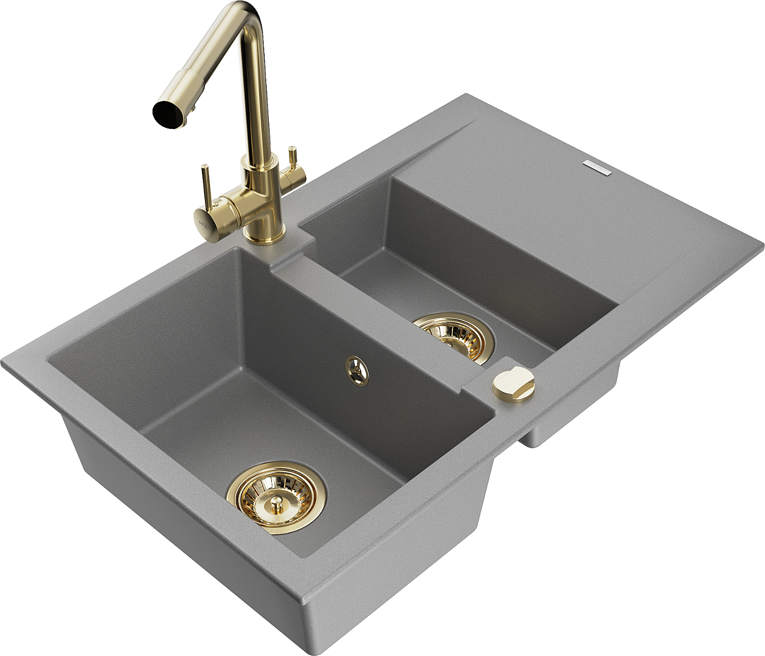 Mexen Gaspar Granit-Spullsteen mat 1,5 Comparten mat Drain an Kichenkraan Duero, Gro - 6507-71-671600-50
