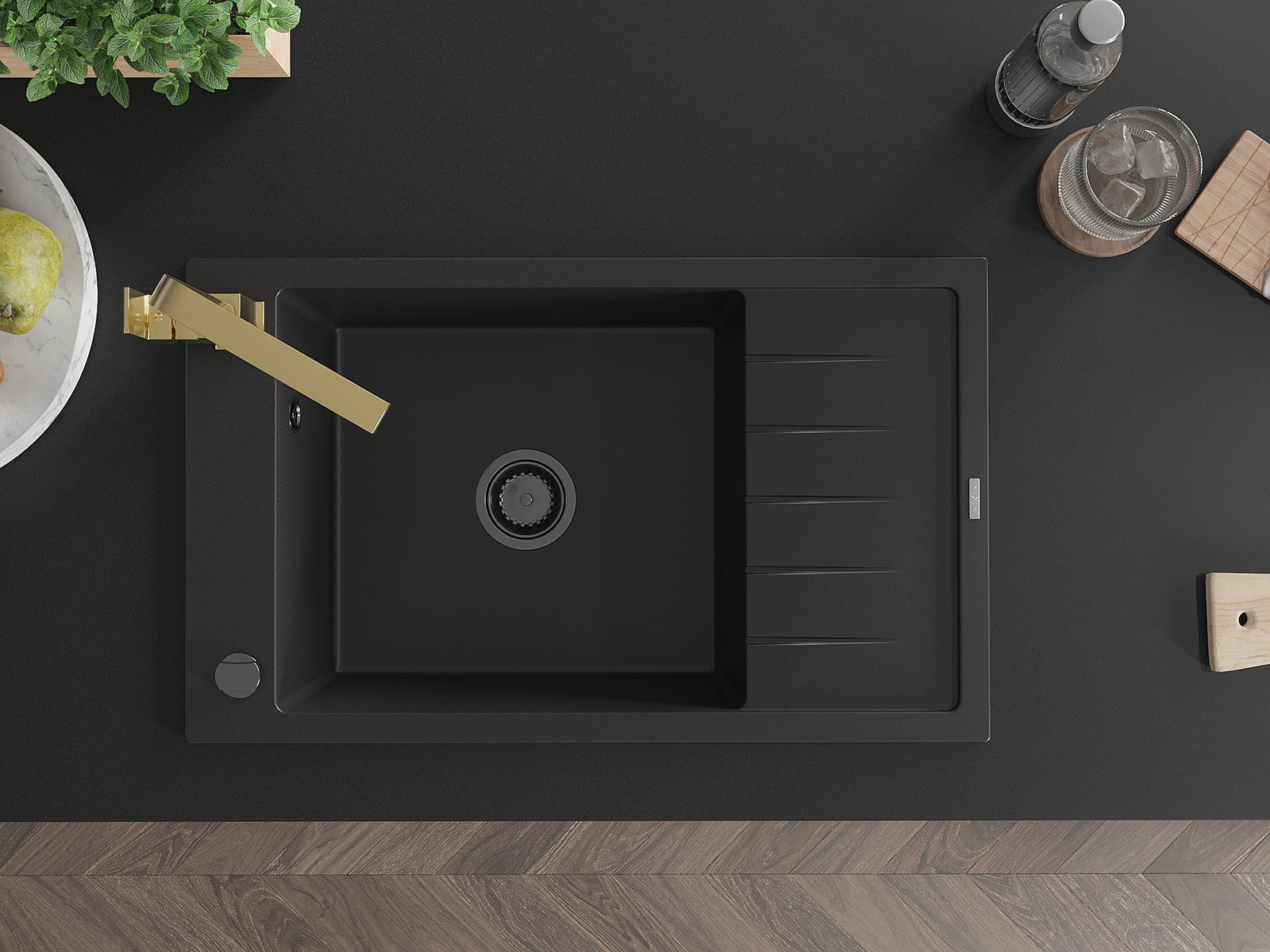 Mexen Elias Granitspullverwäerf mat 1 Komor an Ofdrock, mat Kichenkeplung Rita, schwaarz - 6511-77-670300-50-B