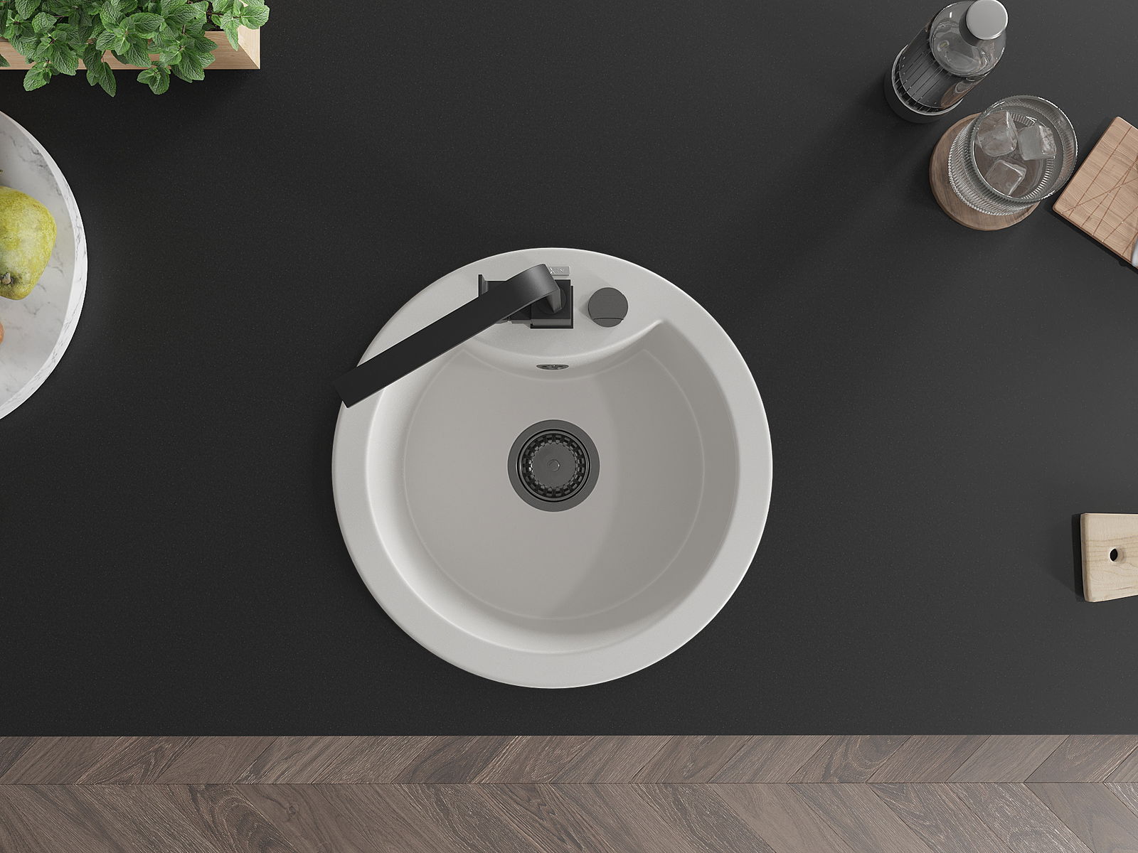 Den Ëmwäschbecken ass aus héichwäertege Granit gemaach. Et stellt eng elegant awer virun allem praktesch Ergänzung fir all Kichen duer, onofhängeg vun hirem Stil. Déi héich Qualitéit an Haltbarkeet vum Granit suergen fir méi järelaang Benotzung.