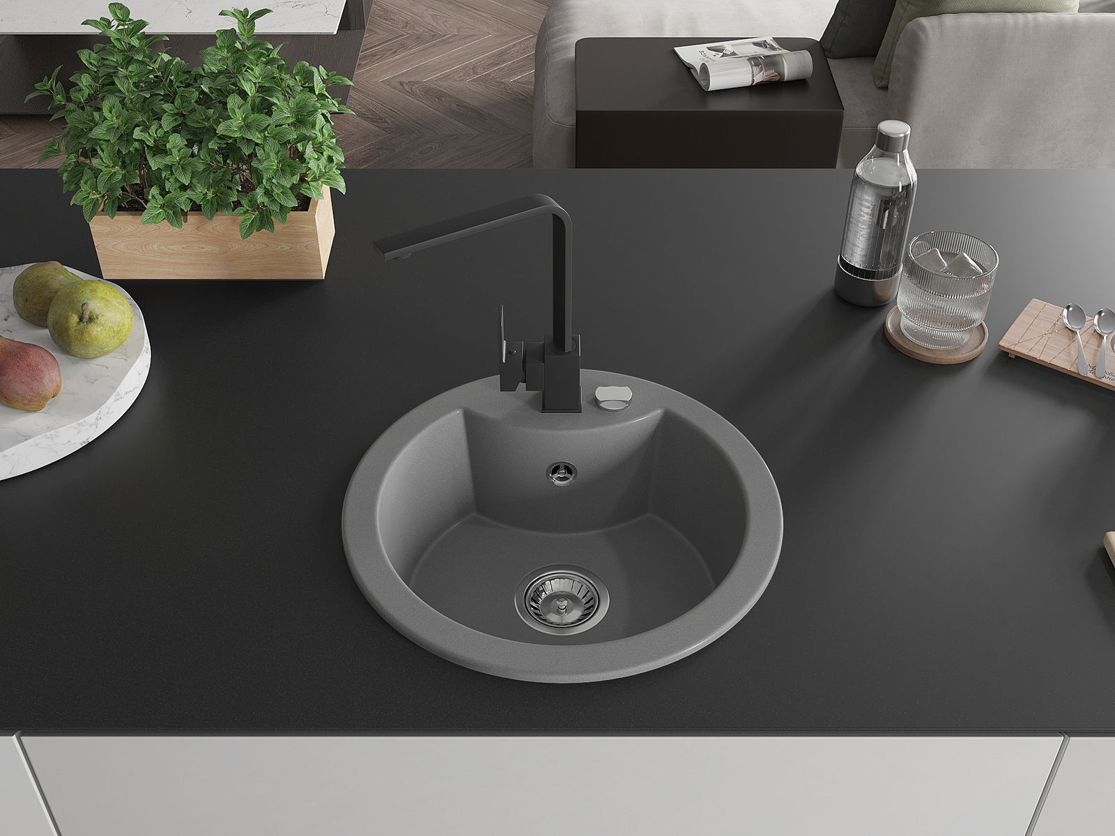 Mexen Diego Granit-Spullsteng eenzeg Kammer mat Kichenkran Rita, gro - 6512-71-670300-70