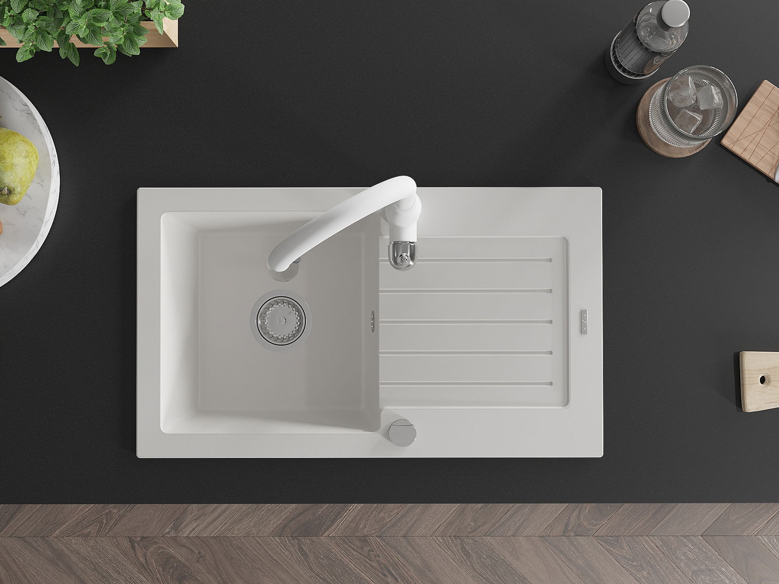 D'Uewerfläch vum Spullstee ass fleck- a verfärbungsresistent, wat se einfach ze botzen mécht an hir Faarf iwwer eng laang Zäit vum Gebrauch behalen léisst. Esthetesch an praktesch Ergänzung fir all Kichen.