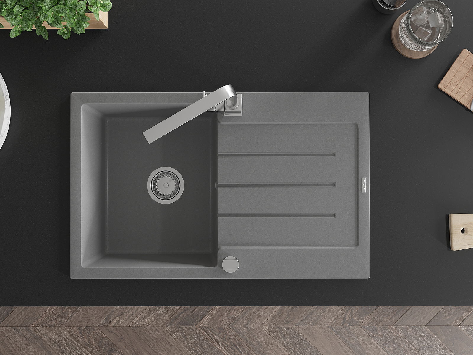 Mexen Bruno granitanke Spullsteen mat enger Kammer mat Ofdrock an enger Rita Kichekraan, gro - 6513-71-670300-00