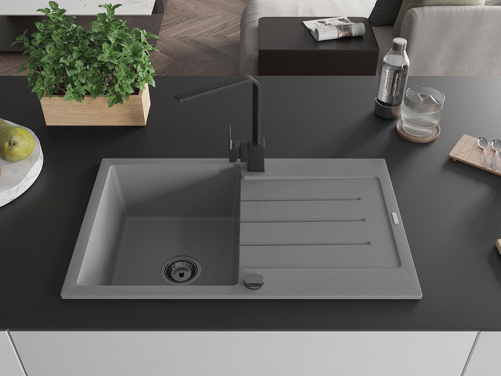 Den Ëmwäschbecken ass aus héichwäertege Granit gemaach. Et stellt eng elegant awer virun allem praktesch Ergänzung fir all Kichen duer, onofhängeg vun hirem Stil. Déi héich Qualitéit an Haltbarkeet vum Granit suergen fir méi järelaang Benotzung.
