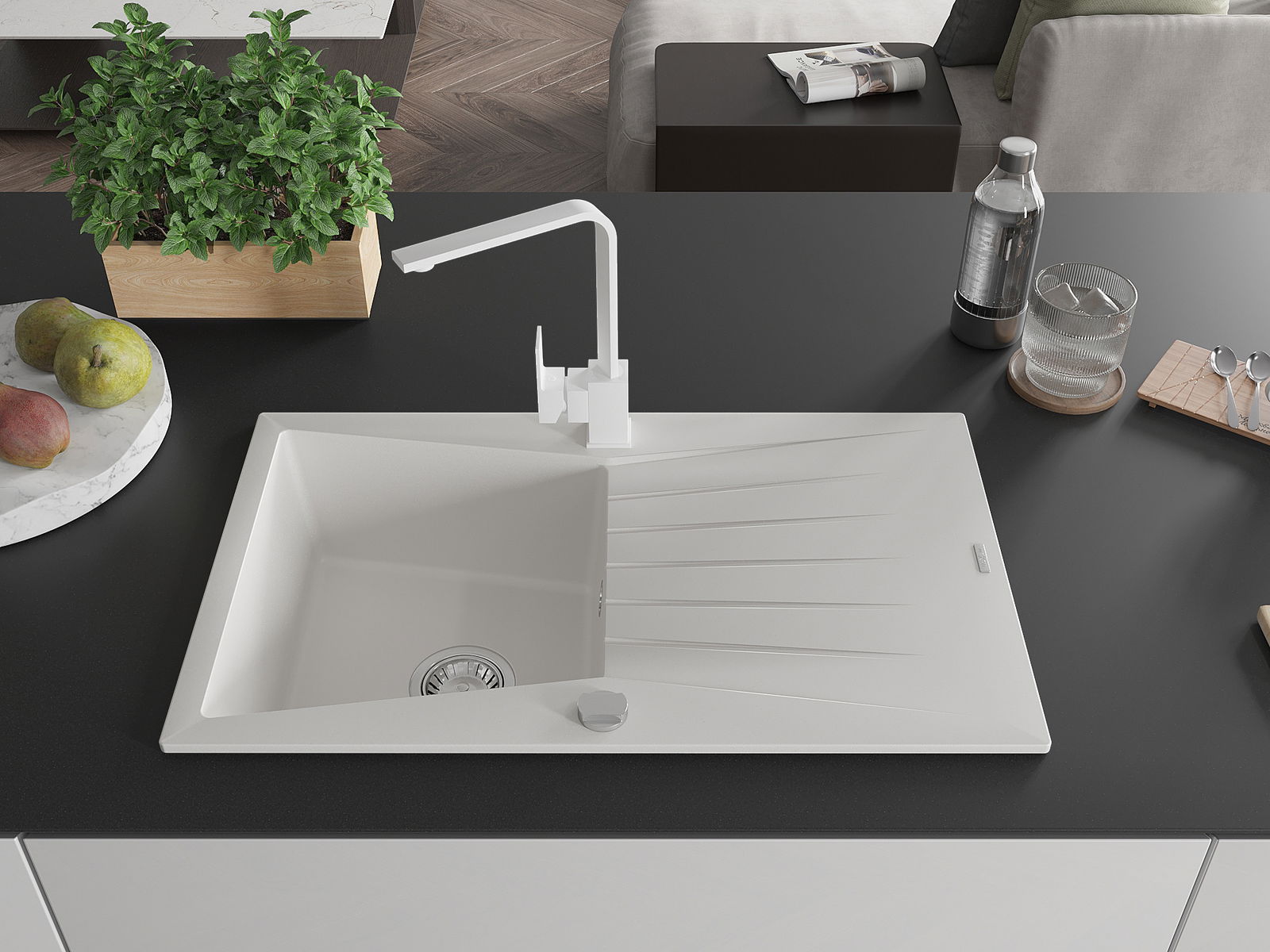 D'Uewerfläch vum Spullstee ass fleck- a verfärbungsresistent, wat se einfach ze botzen mécht an hir Faarf iwwer eng laang Zäit vum Gebrauch behalen léisst. Esthetesch an praktesch Ergänzung fir all Kichen.