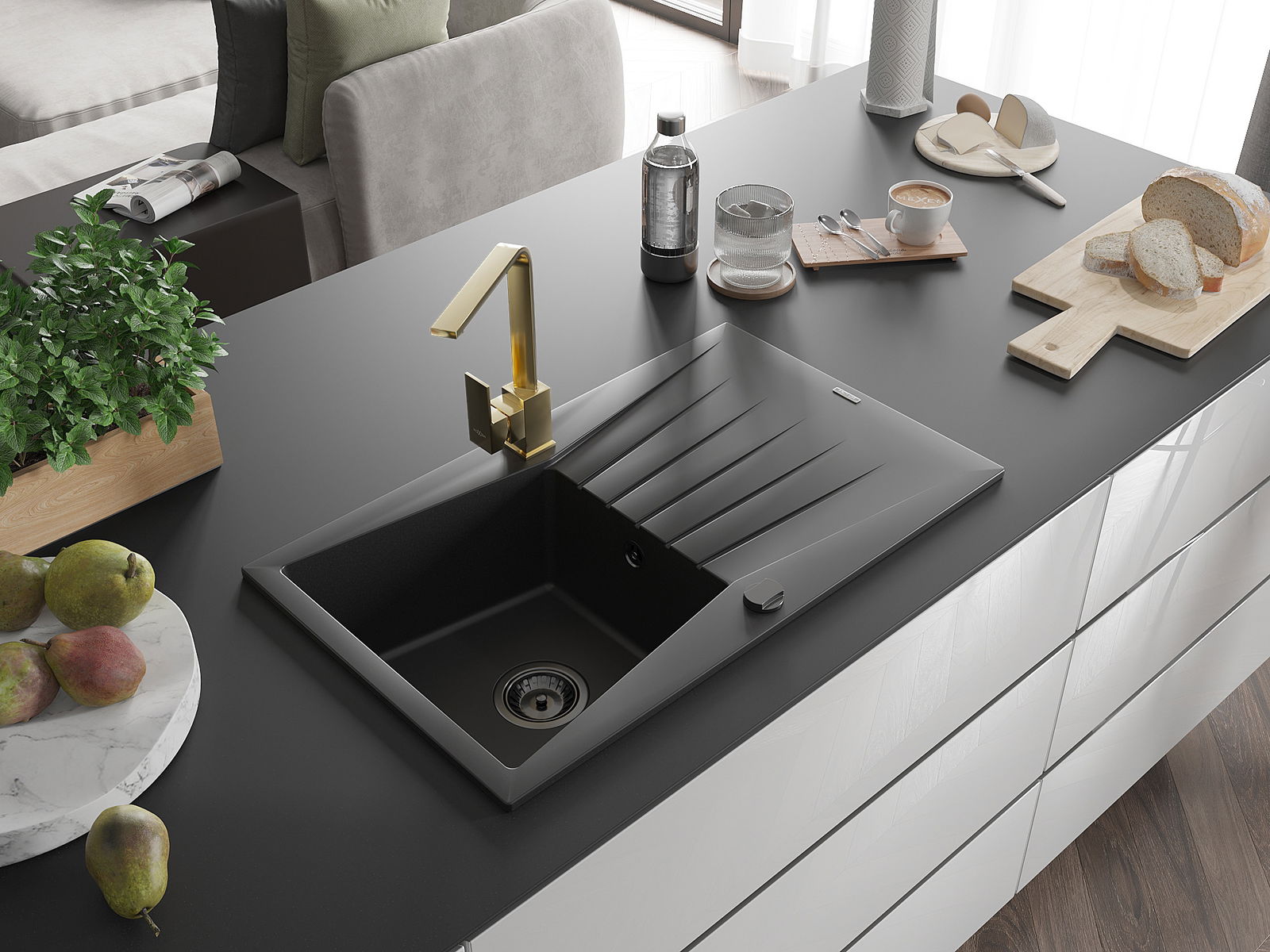Den Ëmwäschbecken ass aus héichwäertege Granit gemaach. Et stellt eng elegant awer virun allem praktesch Ergänzung fir all Kichen duer, onofhängeg vun hirem Stil. Déi héich Qualitéit an Haltbarkeet vum Granit suergen fir méi järelaang Benotzung.