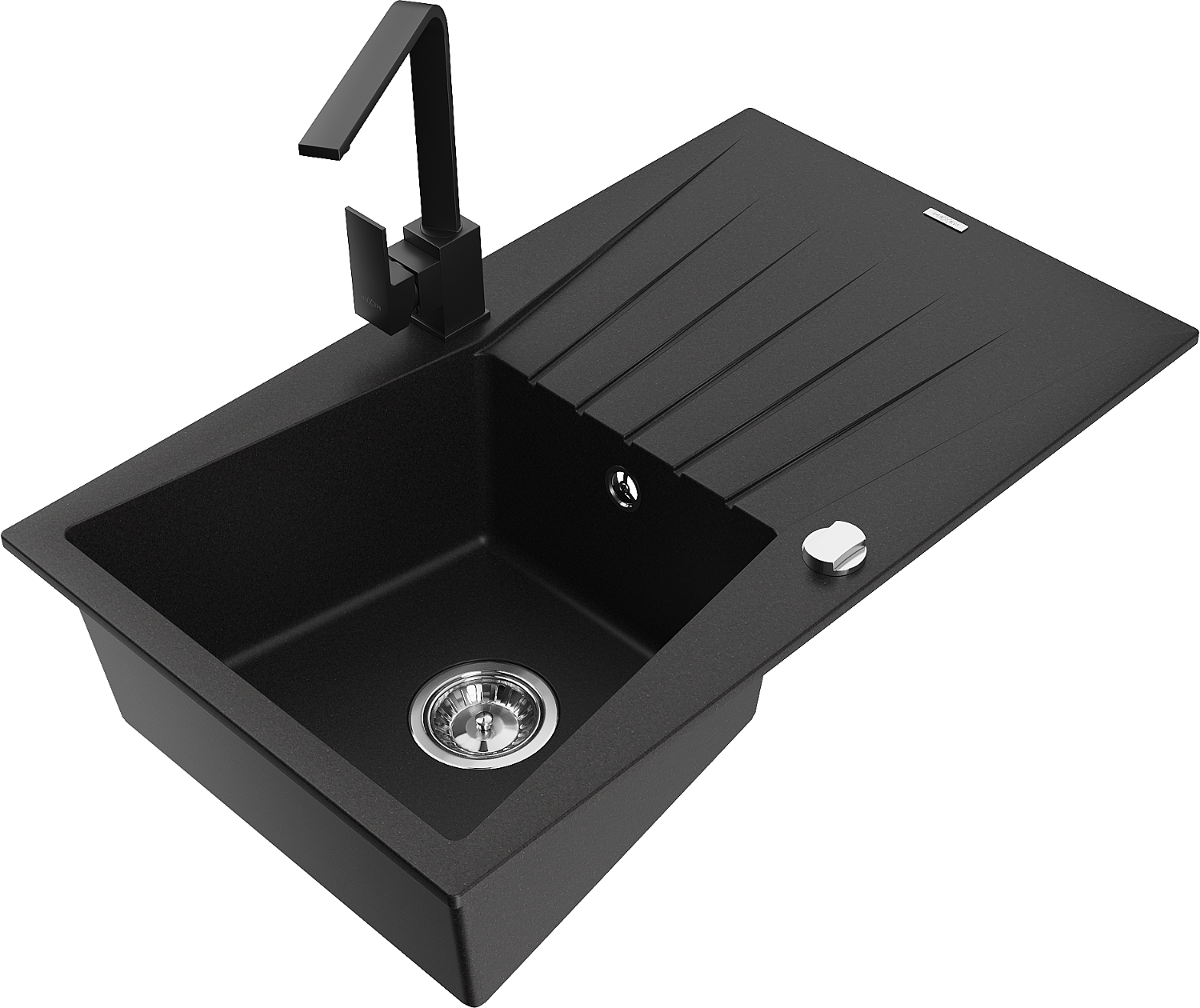 Mexen Cesar Granitspullut 1-Kummer mat Drënaarbechtsfläch an Kichenkraan Rita, schwaarz - 6514-77-670300-70