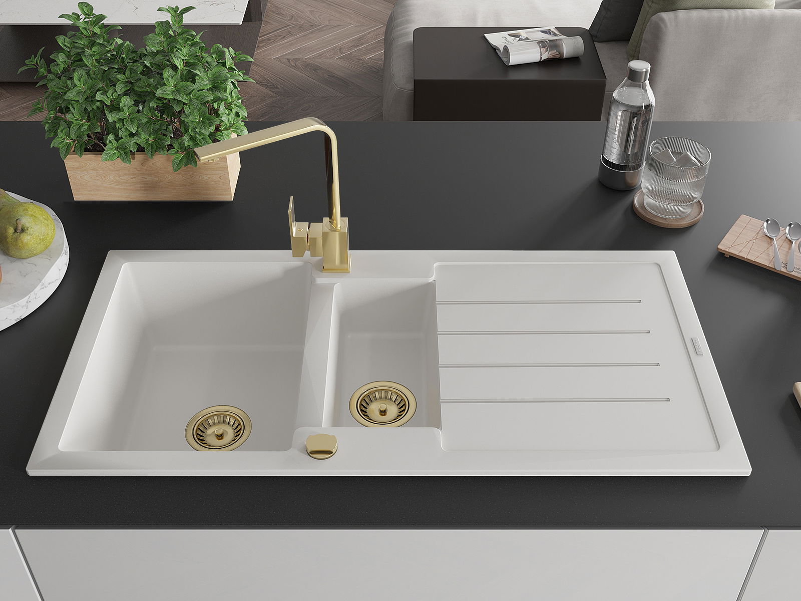 Mexen Andres Granitspullweiser 1,5-Kammeren mat Oflaaf an Kichekran Rita, wäiss - 6515-20-670300-50
