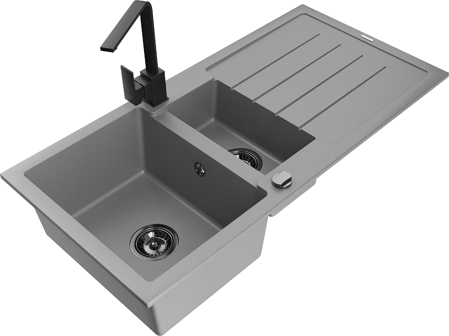 Mexen Andres 1,5-Schacht Granitte Spullsteen mat Drëchentafel a Kichenkrunn Rita, gro - 6515-71-670300-70-B