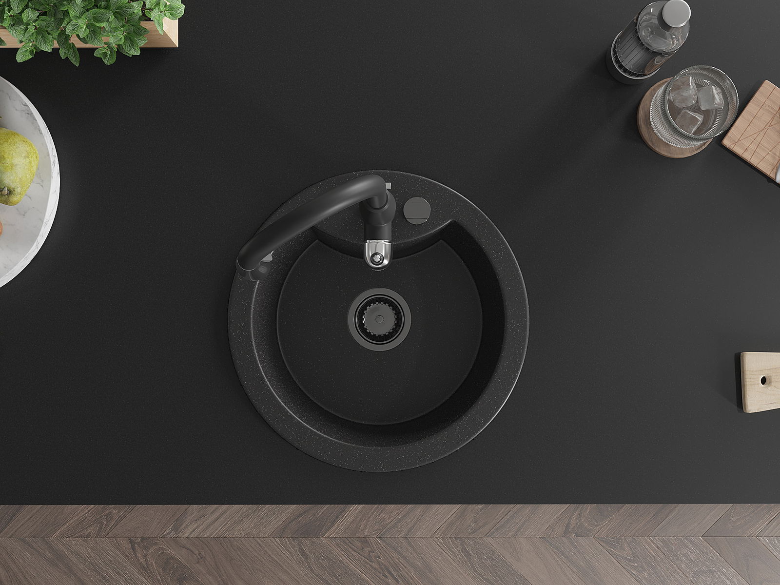 Den Ëmwäschbecken ass aus héichwäertege Granit gemaach. Et stellt eng elegant awer virun allem praktesch Ergänzung fir all Kichen duer, onofhängeg vun hirem Stil. Déi héich Qualitéit an Haltbarkeet vum Granit suergen fir méi järelaang Benotzung.
