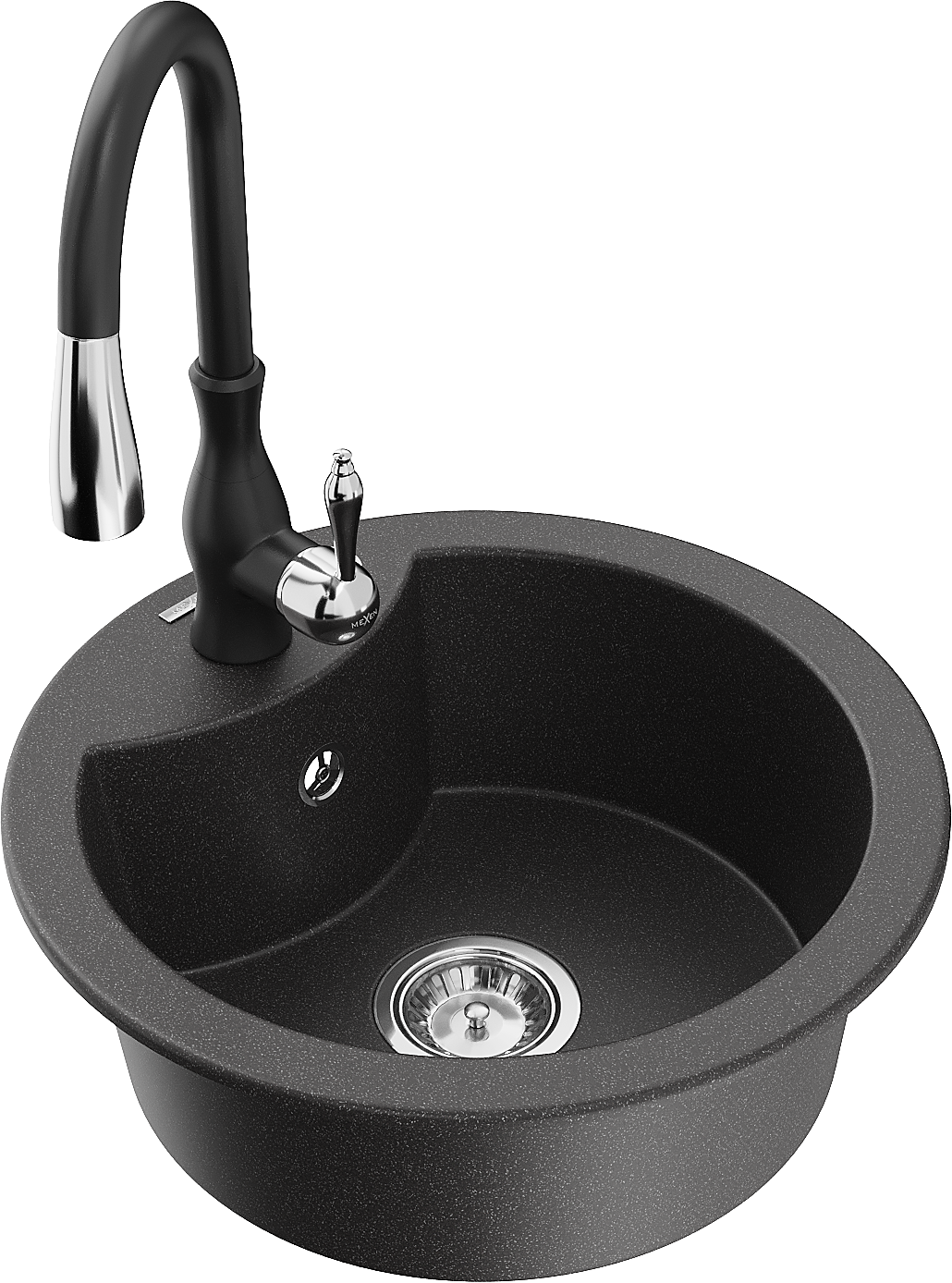 Mexen Diego Granitspullt 1-Kompartiment mat Kichendréchen Savita, schwaarz gesprenkelt - 6512-76-672601-70