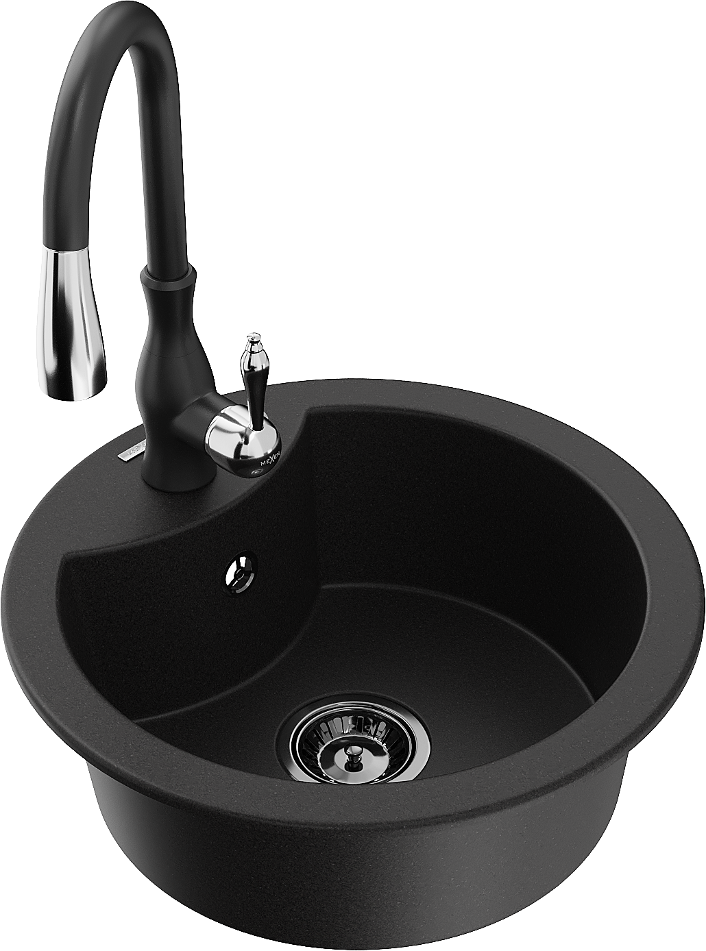 Mexen Diego Granitspullut mat enger Schoss mat Kichenkran Savita, schwaarz - 6512-77-672601-70-B