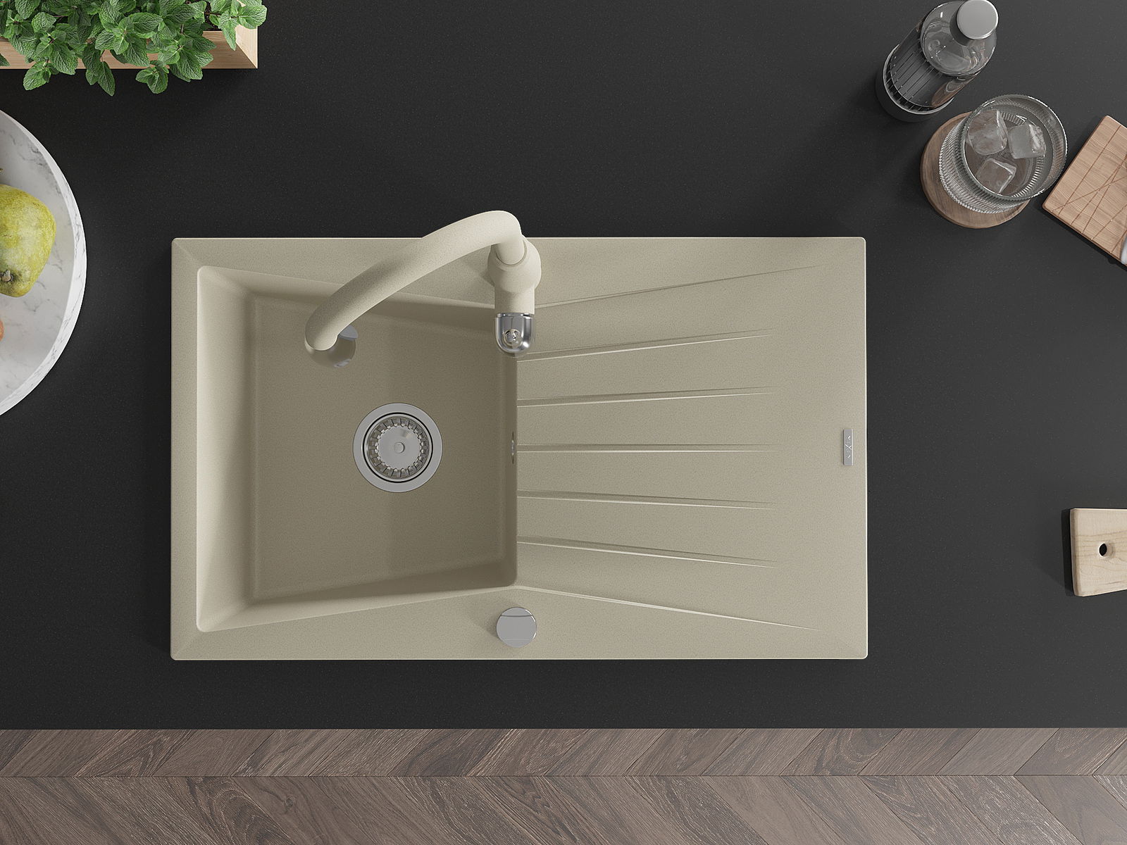 D'Uewerfläch vum Spullstee ass fleck- a verfärbungsresistent, wat se einfach ze botzen mécht an hir Faarf iwwer eng laang Zäit vum Gebrauch behalen léisst. Esthetesch an praktesch Ergänzung fir all Kichen.