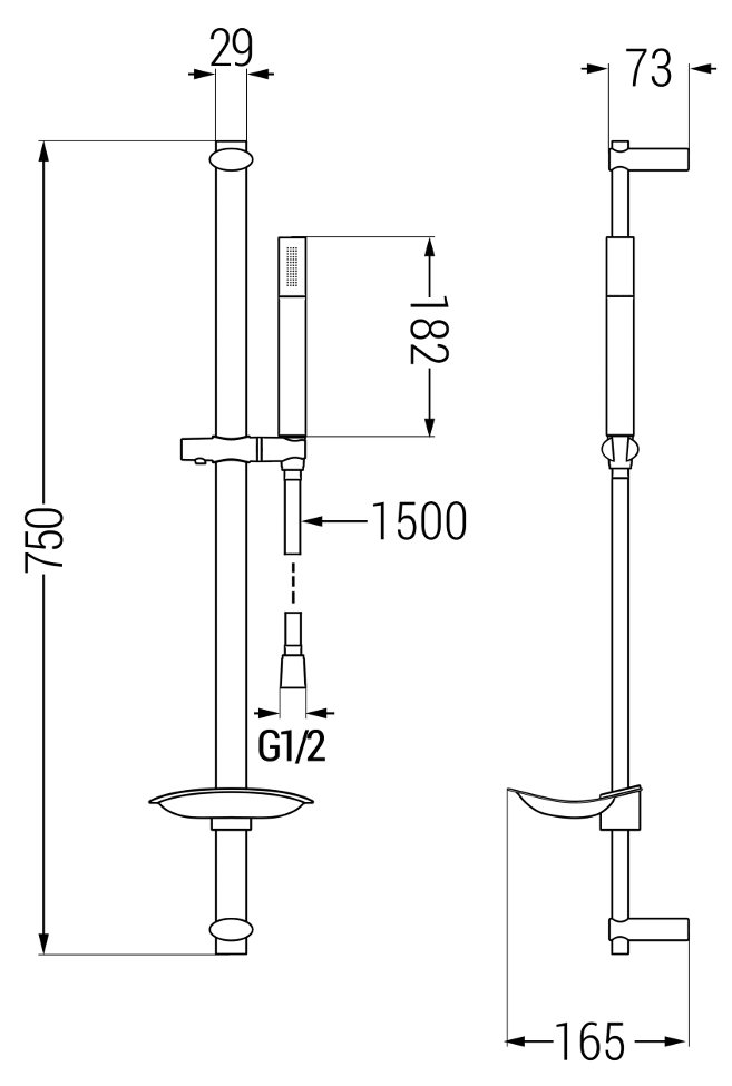 Héicht: 750 mm