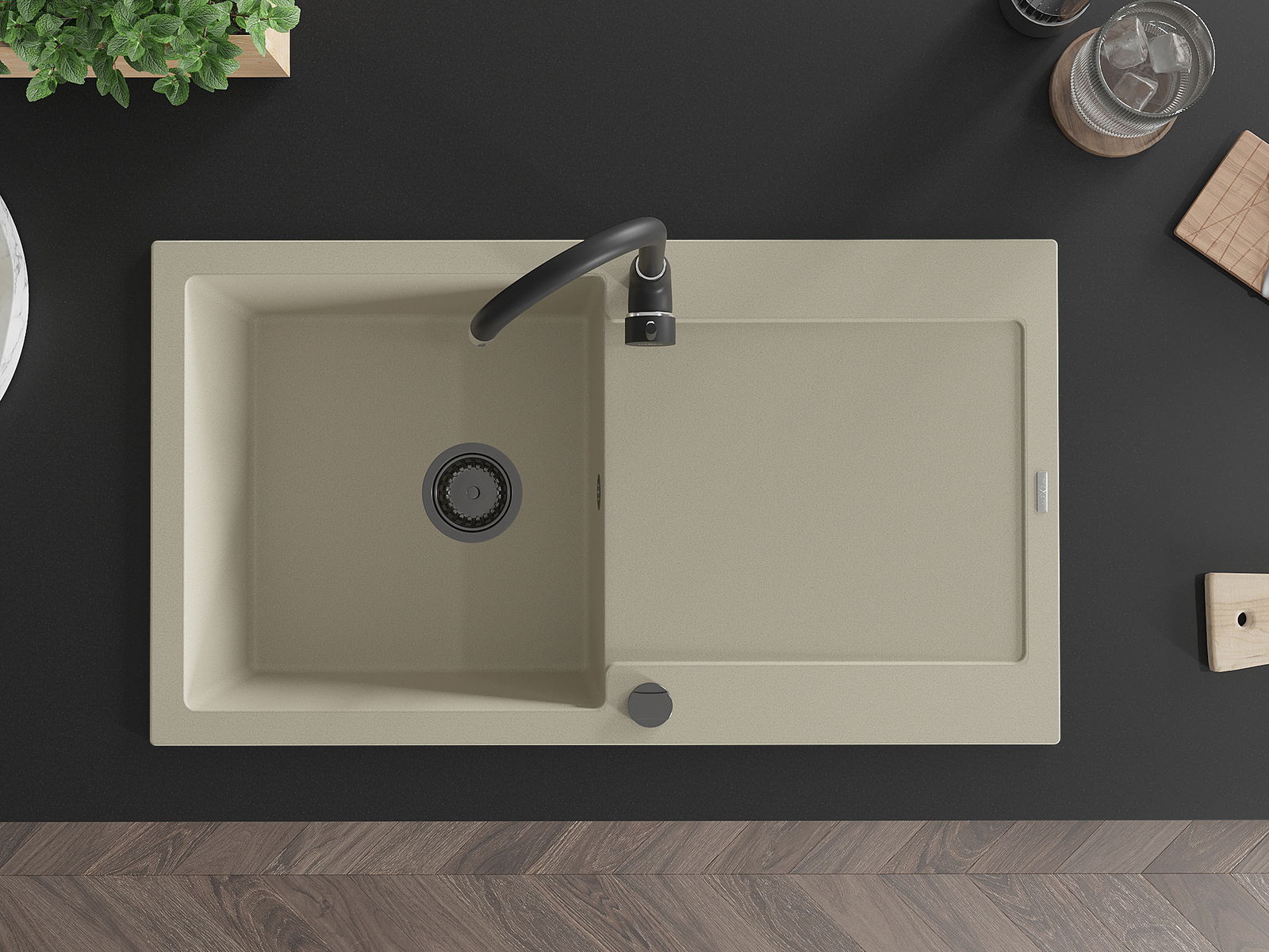 Den Ëmwäschbecken ass aus héichwäertege Granit gemaach. Et stellt eng elegant awer virun allem praktesch Ergänzung fir all Kichen duer, onofhängeg vun hirem Stil. Déi héich Qualitéit an Haltbarkeet vum Granit suergen fir méi järelaang Benotzung.