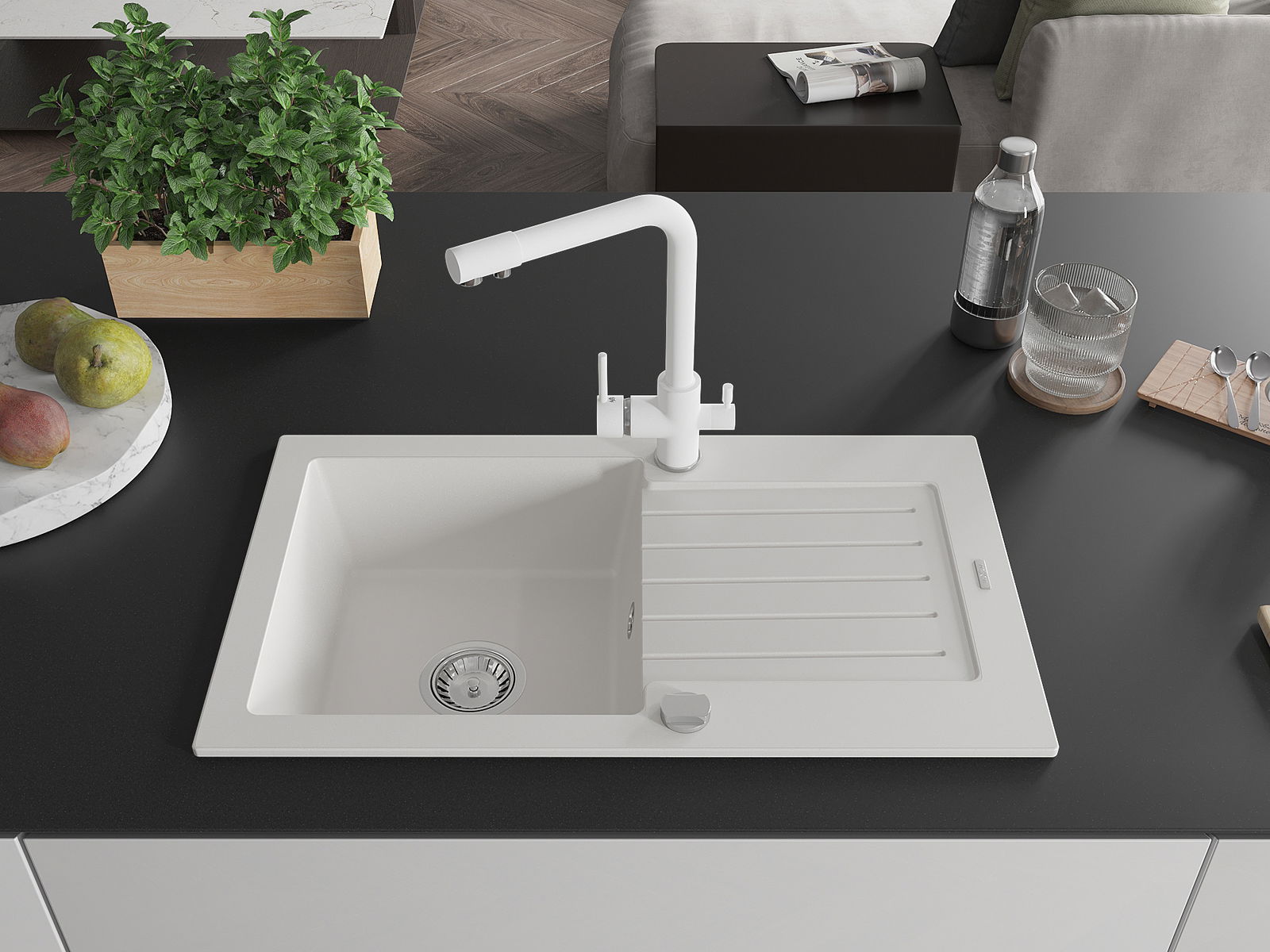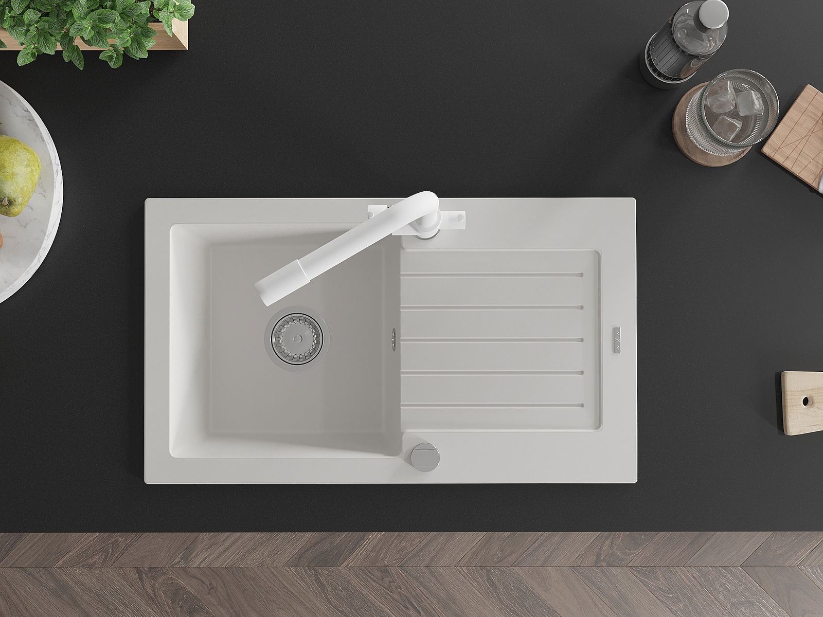 D'Uewerfläch vum Spullstee ass fleck- a verfärbungsresistent, wat se einfach ze botzen mécht an hir Faarf iwwer eng laang Zäit vum Gebrauch behalen léisst. Esthetesch an praktesch Ergänzung fir all Kichen.