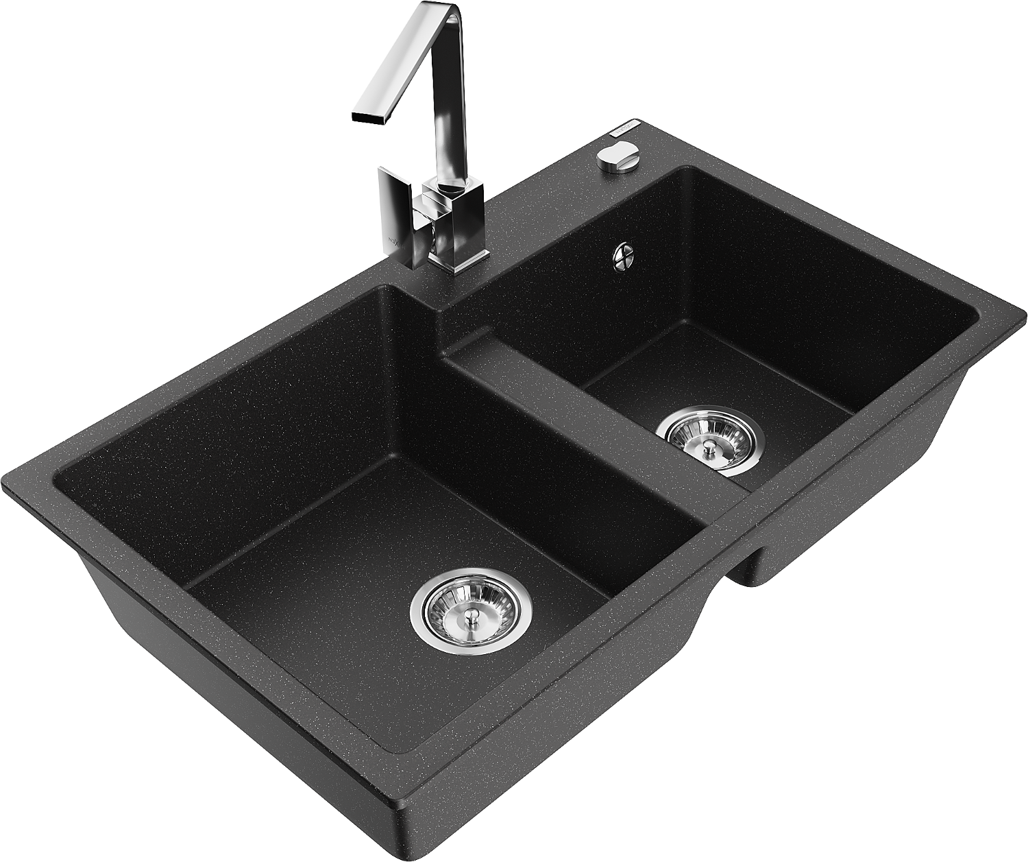 Mexen Tomas Granit-Ëvier mat 2-Kummer mat Kichenkraan Rita, schwaarz/sëlwer Metallic - 6516-73-670300-00