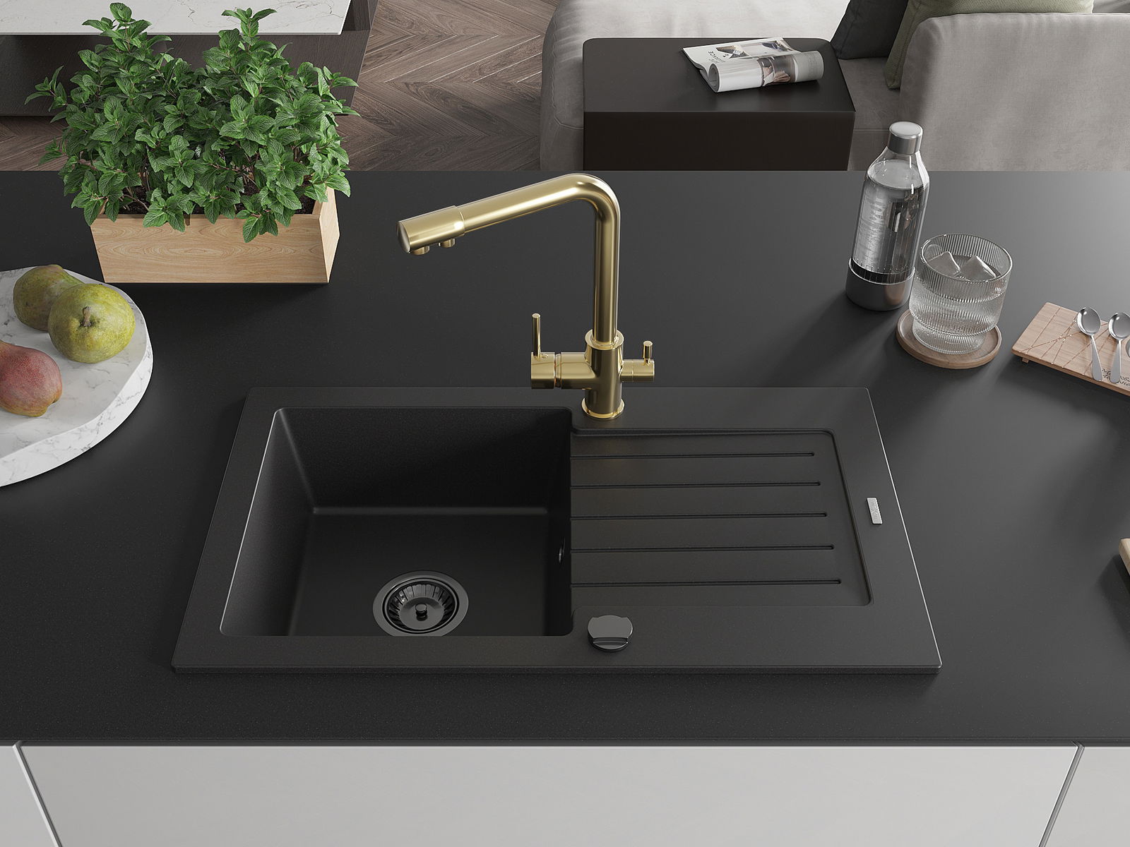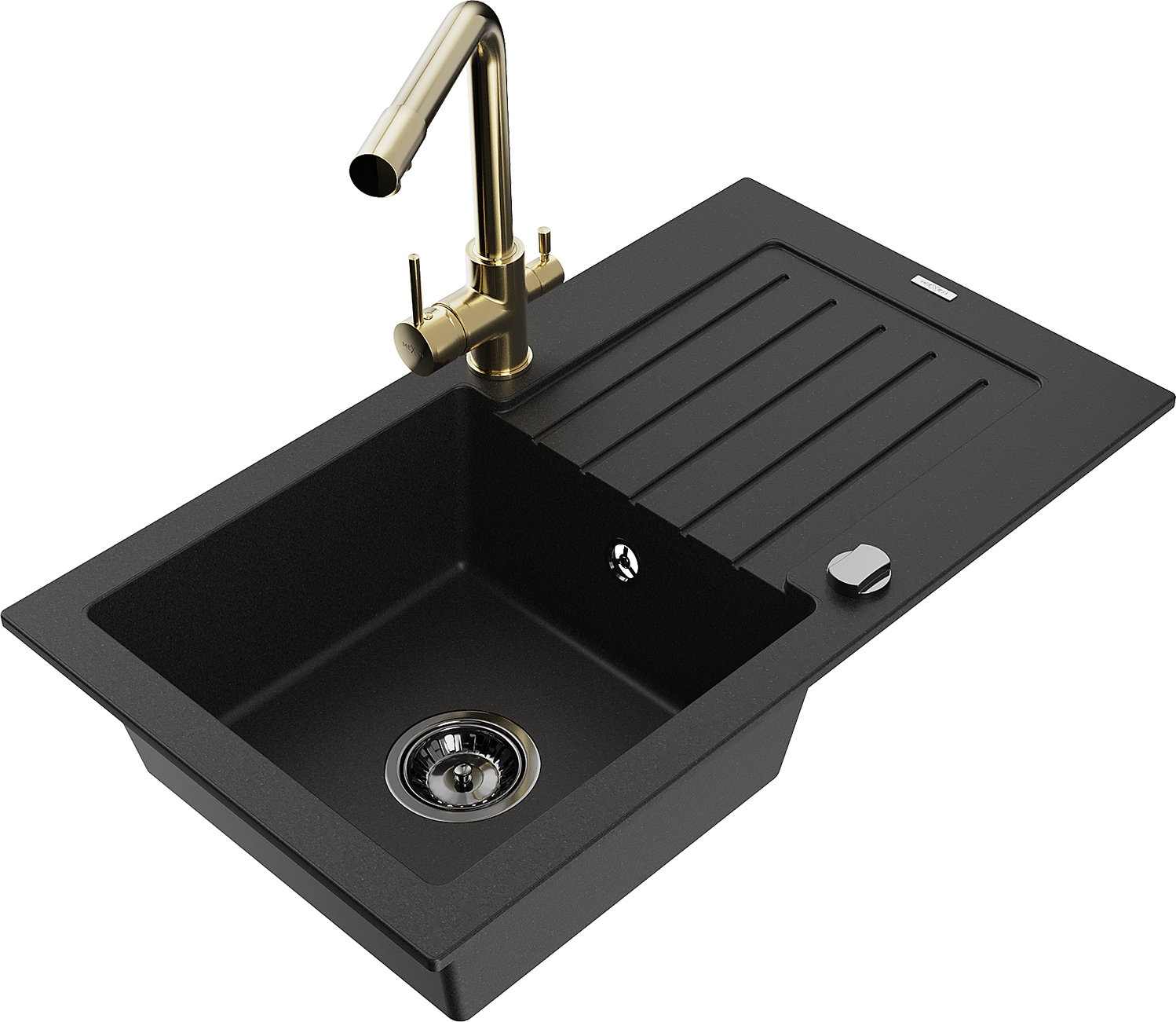 Mexen Pablo Granit Spullsteen mat enger Schoss an enger Kichekraan Duero, schwaarz - 6510-77-671600-50-B