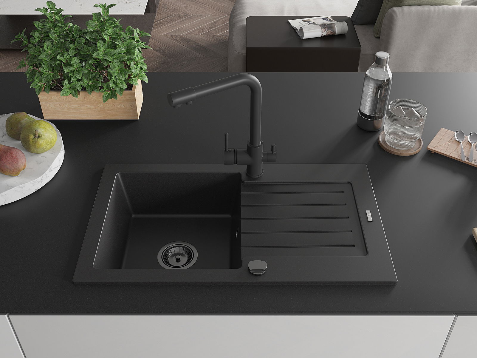 Mexen Pablo Granitlauscht zéngelzeg Spull mam Drainage an der Kichenkran Duero, schwaarz - 6510-77-671600-70-B