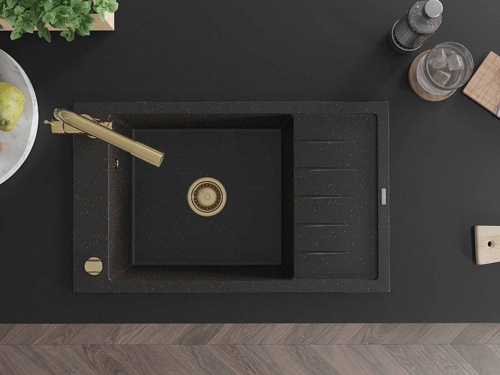 Den Ëmwäschbecken ass aus héichwäertege Granit gemaach. Et stellt eng elegant awer virun allem praktesch Ergänzung fir all Kichen duer, onofhängeg vun hirem Stil. Déi héich Qualitéit an Haltbarkeet vum Granit suergen fir méi järelaang Benotzung.