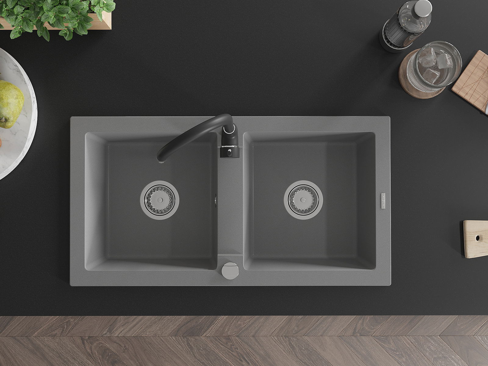 Den Ëmwäschbecken ass aus héichwäertege Granit gemaach. Et stellt eng elegant awer virun allem praktesch Ergänzung fir all Kichen duer, onofhängeg vun hirem Stil. Déi héich Qualitéit an Haltbarkeet vum Granit suergen fir méi järelaang Benotzung.