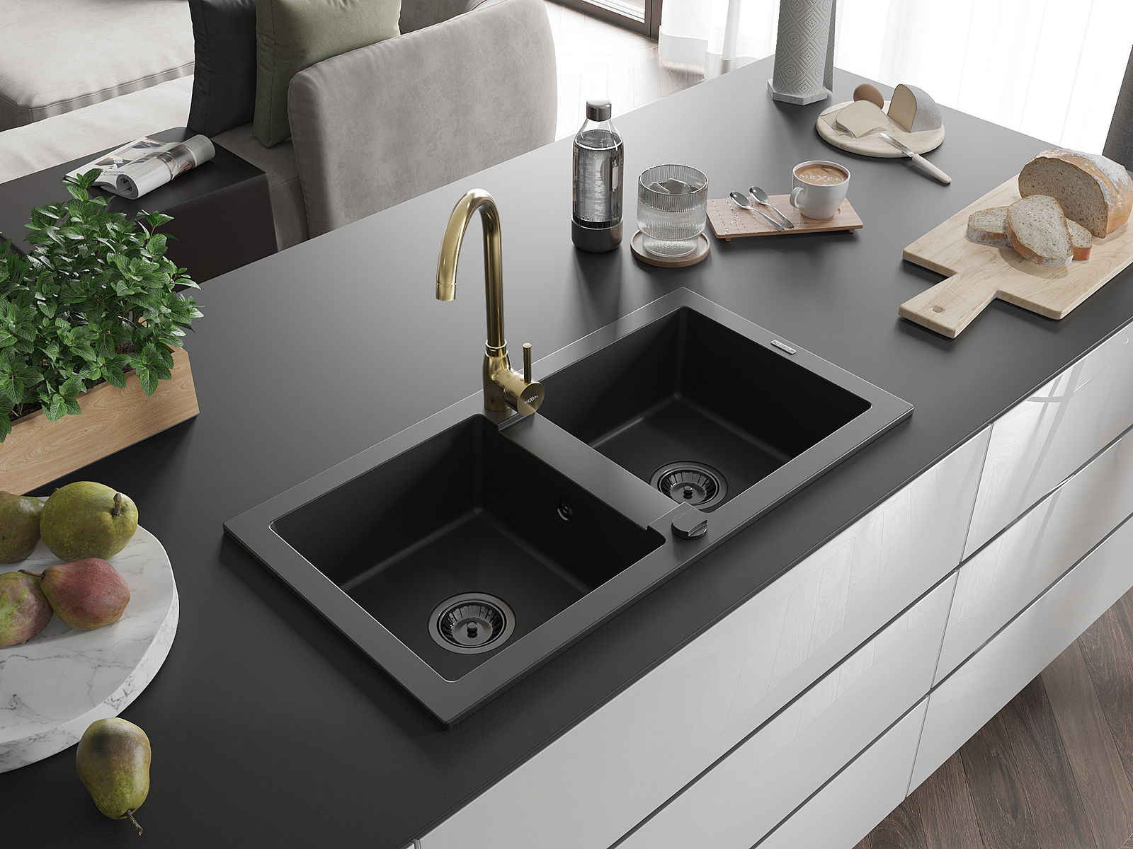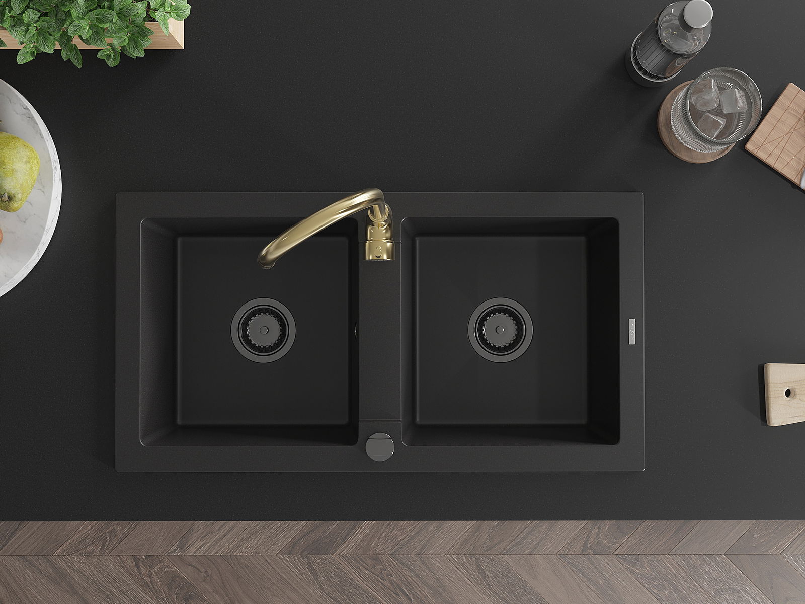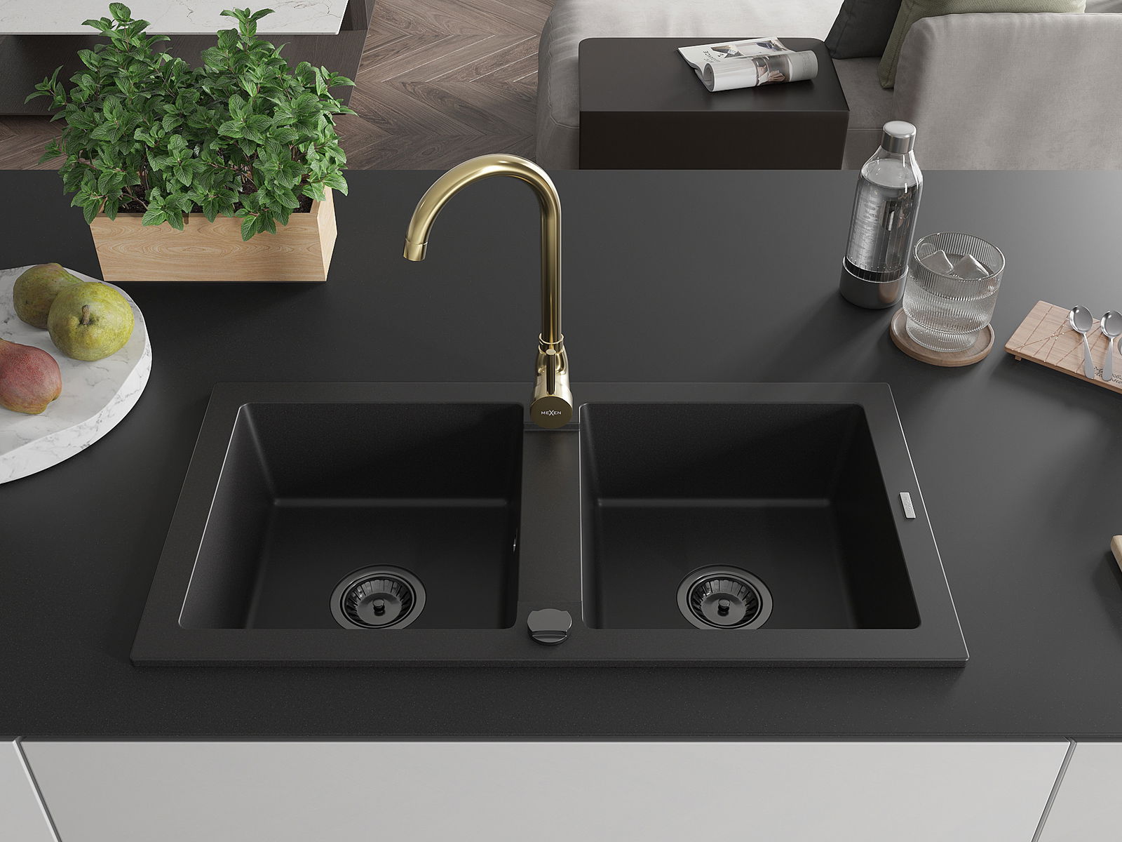 Mexen Mario Granit-Doebbelspull mat Kichekraan Telma, schwaarz - 6504-77-670200-50-B