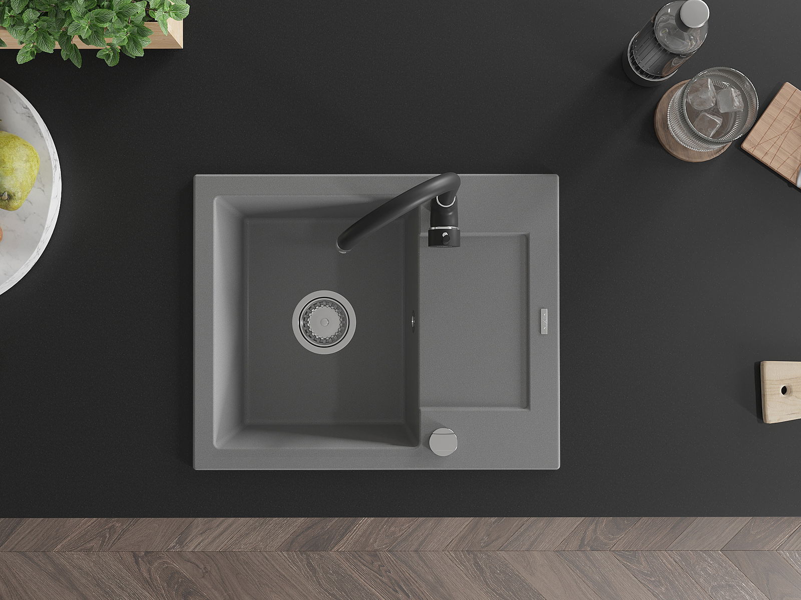 Den Ëmwäschbecken ass aus héichwäertege Granit gemaach. Et stellt eng elegant awer virun allem praktesch Ergänzung fir all Kichen duer, onofhängeg vun hirem Stil. Déi héich Qualitéit an Haltbarkeet vum Granit suergen fir méi järelaang Benotzung.