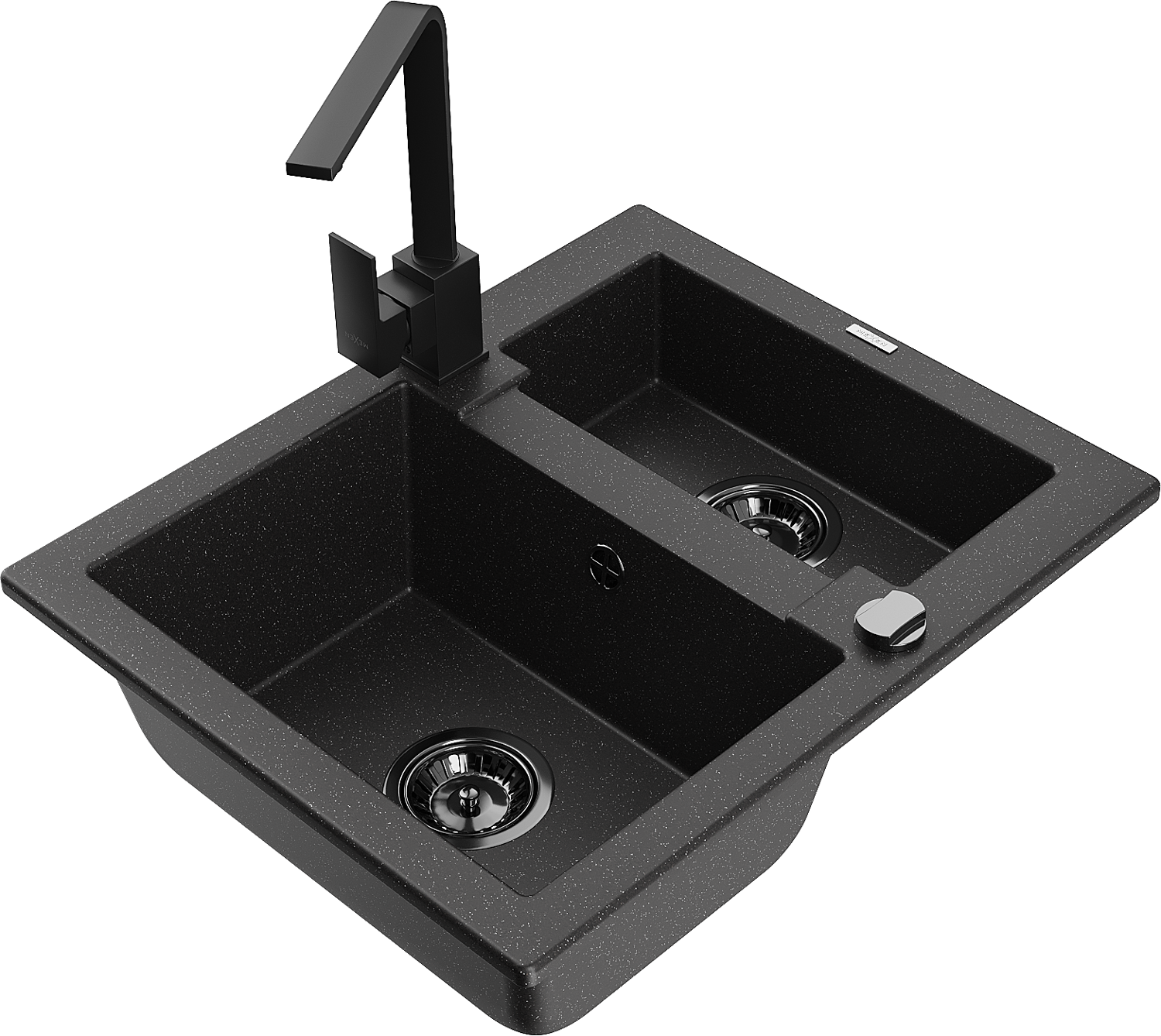 Mexen Carlos 1,5-Kummere Granit-Ëvier mat Kichenkran Rita, schwaarz/sëlwermetallesch - 6518-73-670300-70-B