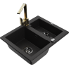 Den Ëmwäschbecken ass aus héichwäertege Granit gemaach. Et stellt eng elegant awer virun allem praktesch Ergänzung fir all Kichen duer, onofhängeg vun hirem Stil. Déi héich Qualitéit an Haltbarkeet vum Granit suergen fir méi järelaang Benotzung.