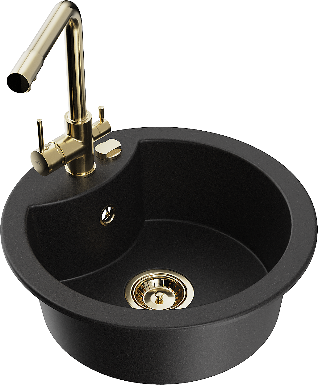 Mexen Diego Granit Kicheldëppen mat enger Schoss an Kichenduchbatterie Duero, schwaarz - 6512-77-671600-50