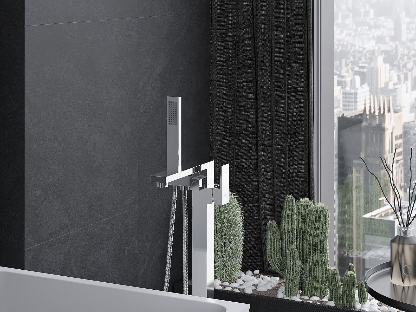 Produkt aus héichwäertege Materialien, déi resistent géint Dofegeet a Korrosioun sinn, doduerch behält et seng attraktiv Ausgesin an Funktionalitéit laangfristeg, onofhängeg vum Feuchtigkeitsniveau am Raum.