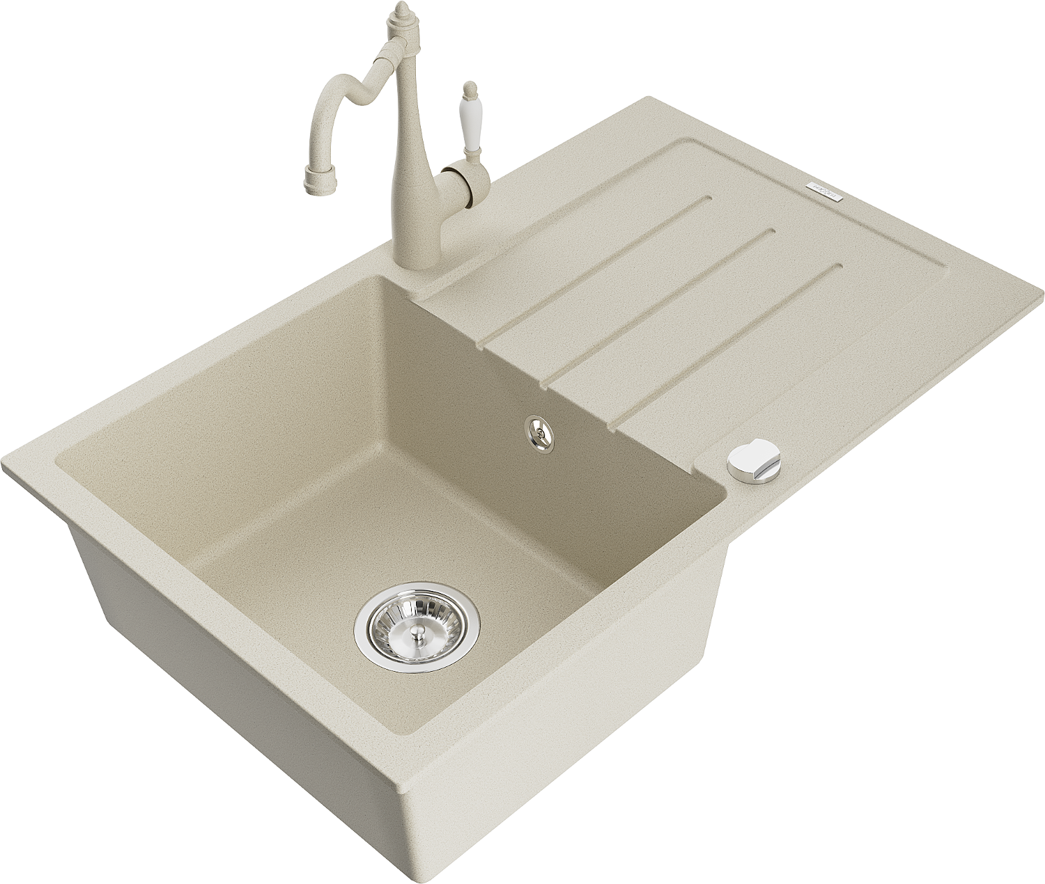 Mexen Bruno granitten Eenbau-Spullsteen mat enger Kummer, drachend no klengen Steck, beige - 6513-69-670700-69