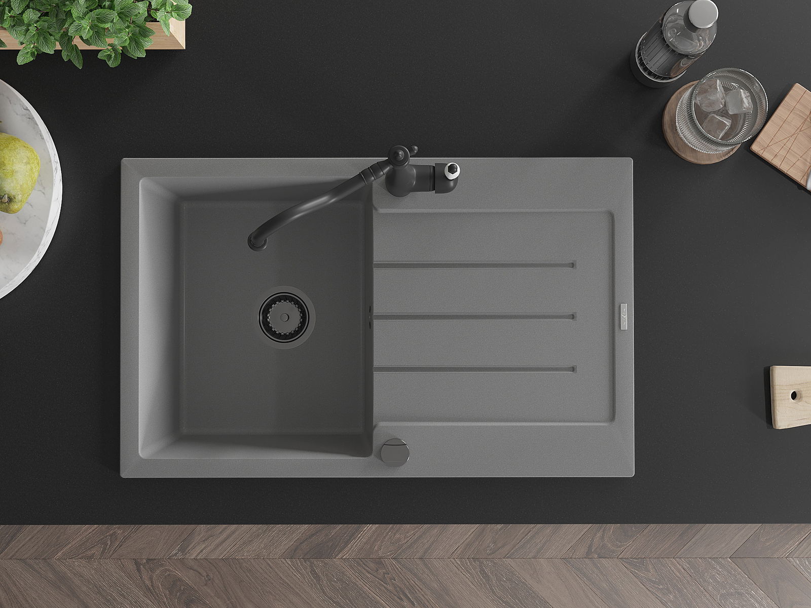 Den Ëmwäschbecken ass aus héichwäertege Granit gemaach. Et stellt eng elegant awer virun allem praktesch Ergänzung fir all Kichen duer, onofhängeg vun hirem Stil. Déi héich Qualitéit an Haltbarkeet vum Granit suergen fir méi järelaang Benotzung.