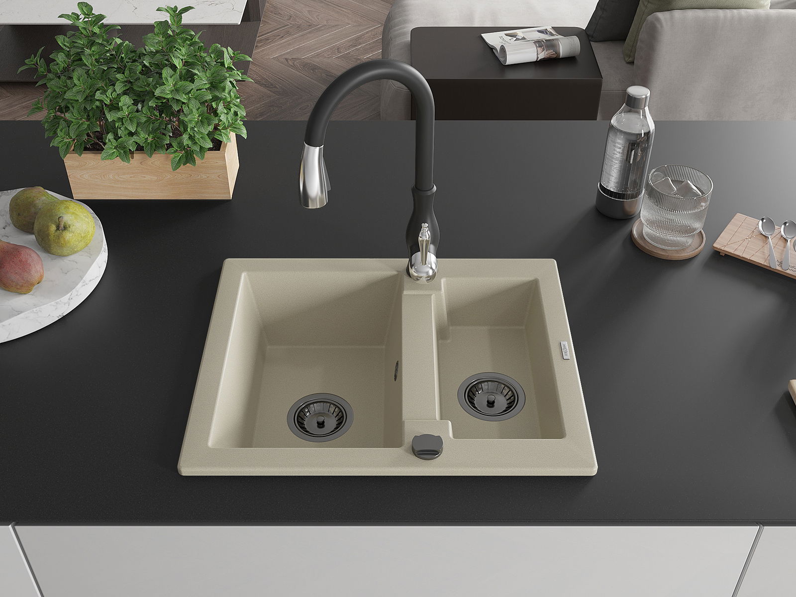 Mexen Carlos Granit-Spullmupp 1,5-Kummer mat Kichekraa Savita, beech - 6518-69-672601-70