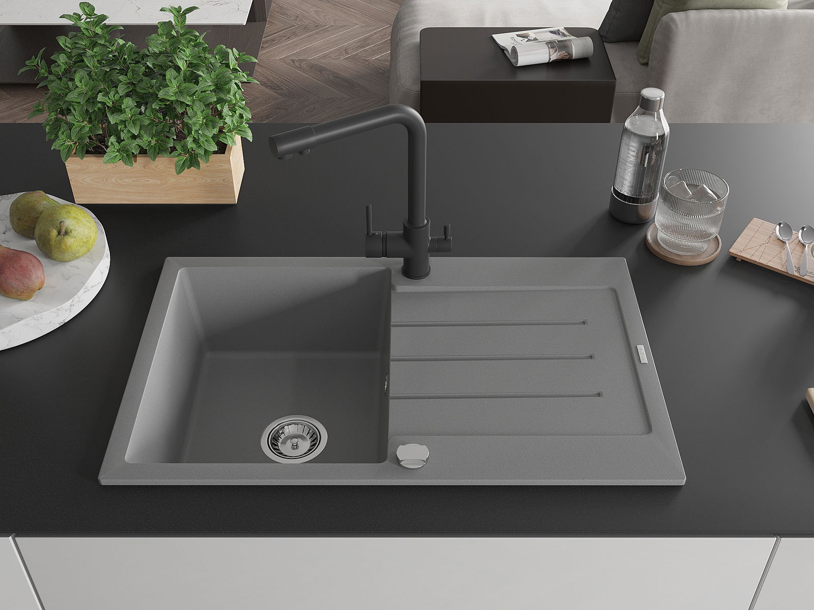 Den Ëmwäschbecken ass aus héichwäertege Granit gemaach. Et stellt eng elegant awer virun allem praktesch Ergänzung fir all Kichen duer, onofhängeg vun hirem Stil. Déi héich Qualitéit an Haltbarkeet vum Granit suergen fir méi järelaang Benotzung.