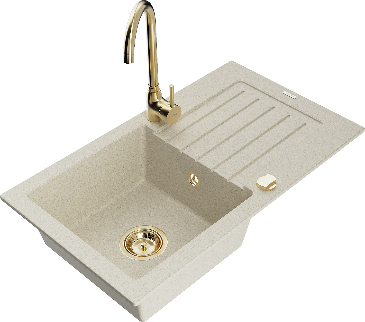 Mexen Pablo Granit Ëmkéitchen mat 1 Kummer, Oflaaf an Kichekraan Telma, beige - 6510-69-670200-50