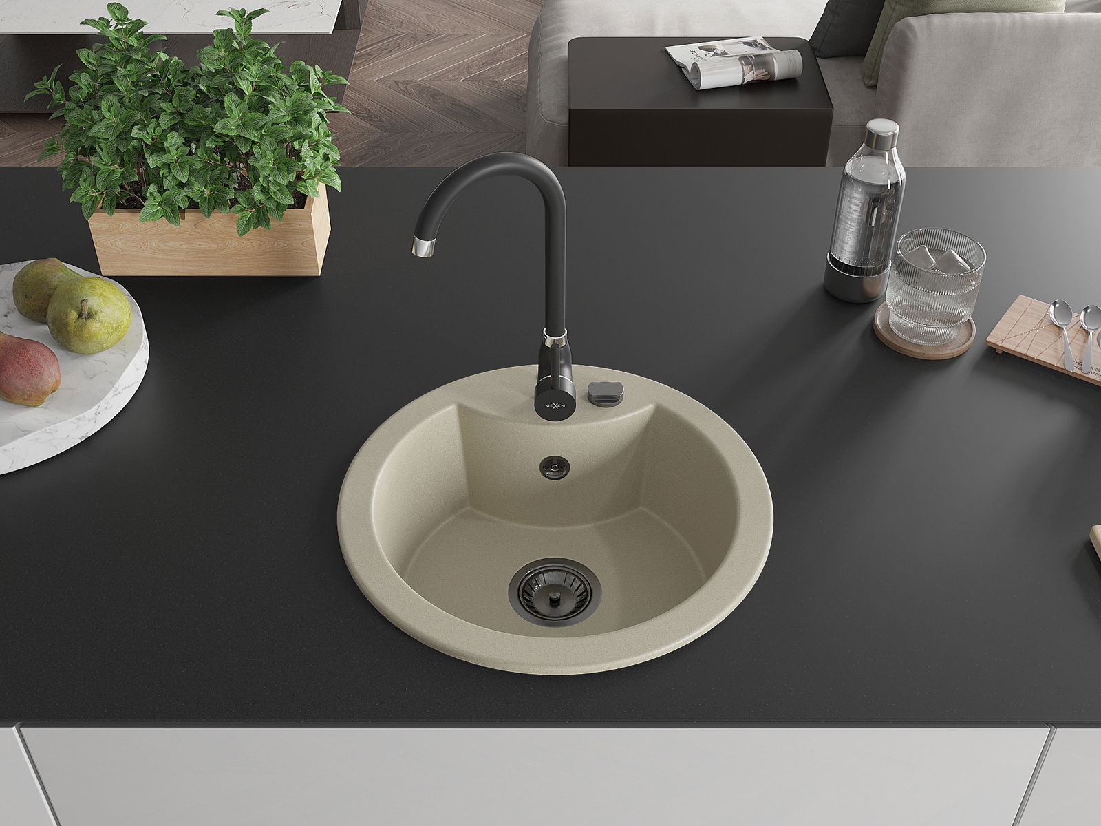 Mexen Diego Granit-Spullsteen mat enger Kichenkrunn Telma, beige - 6512-69-670200-70