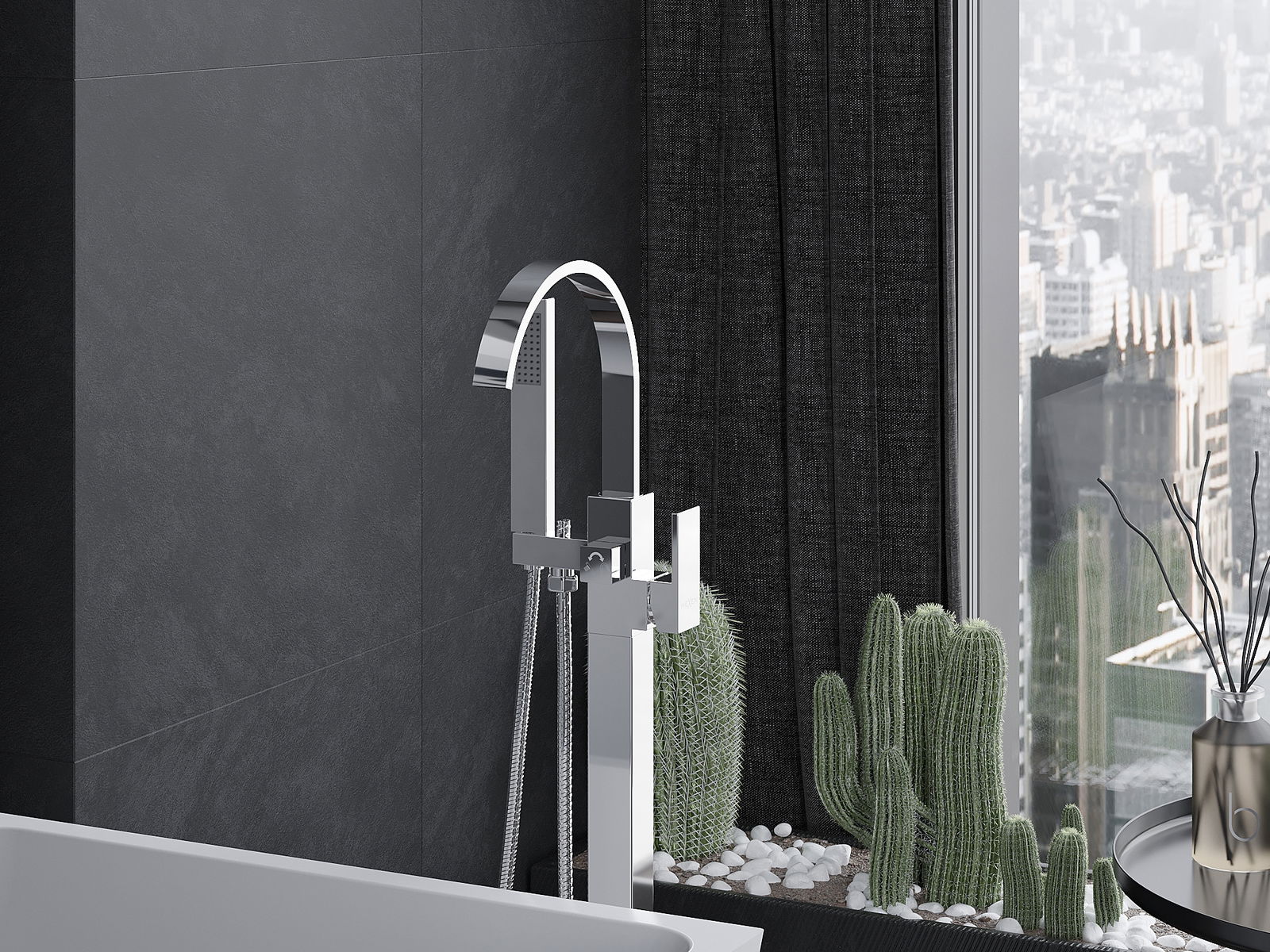 Den Cascade Effekt bewierkt, datt Waasser e breeden, flaachen Stroum formt, deen a Wierklechkeet engem Waasserfall gläicht. Entspanende Vue, déi dem Buedzëmmer e spezielle Charakter gëtt an eng eenzegaarteg Atmosphär kreéiert. Erméiglecht eng gläichméisseg Waasserdusche.
