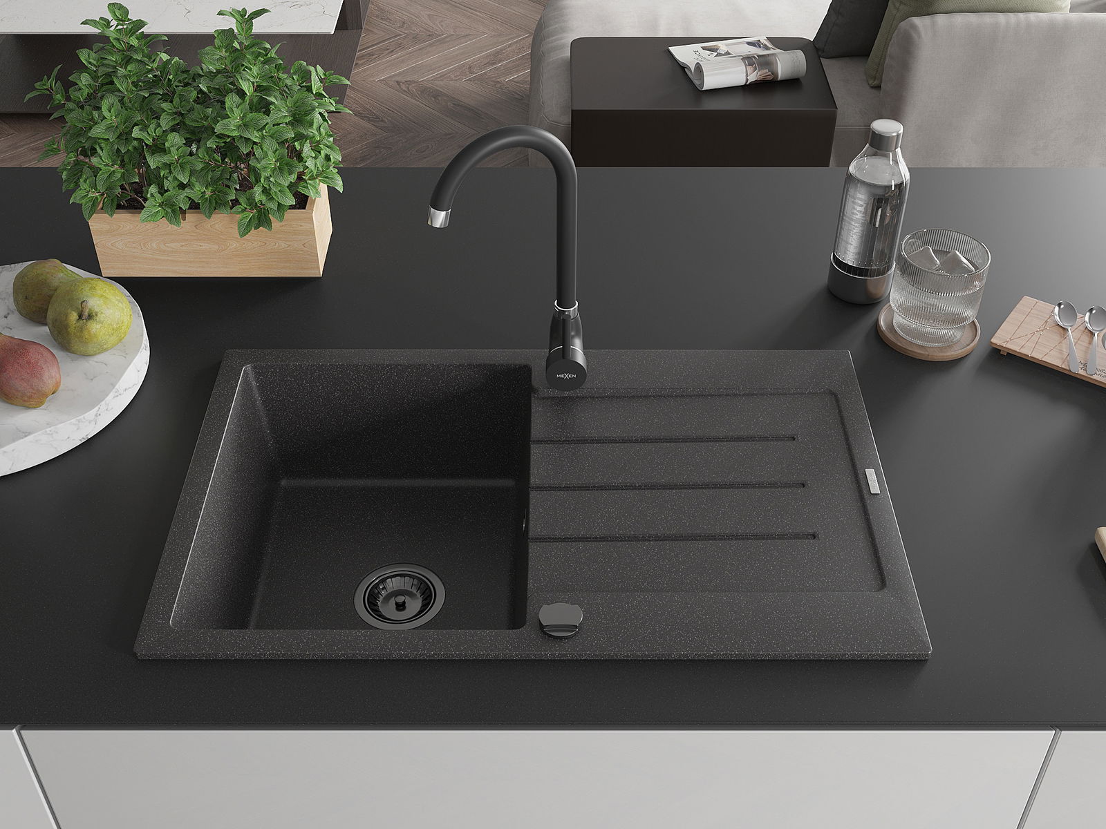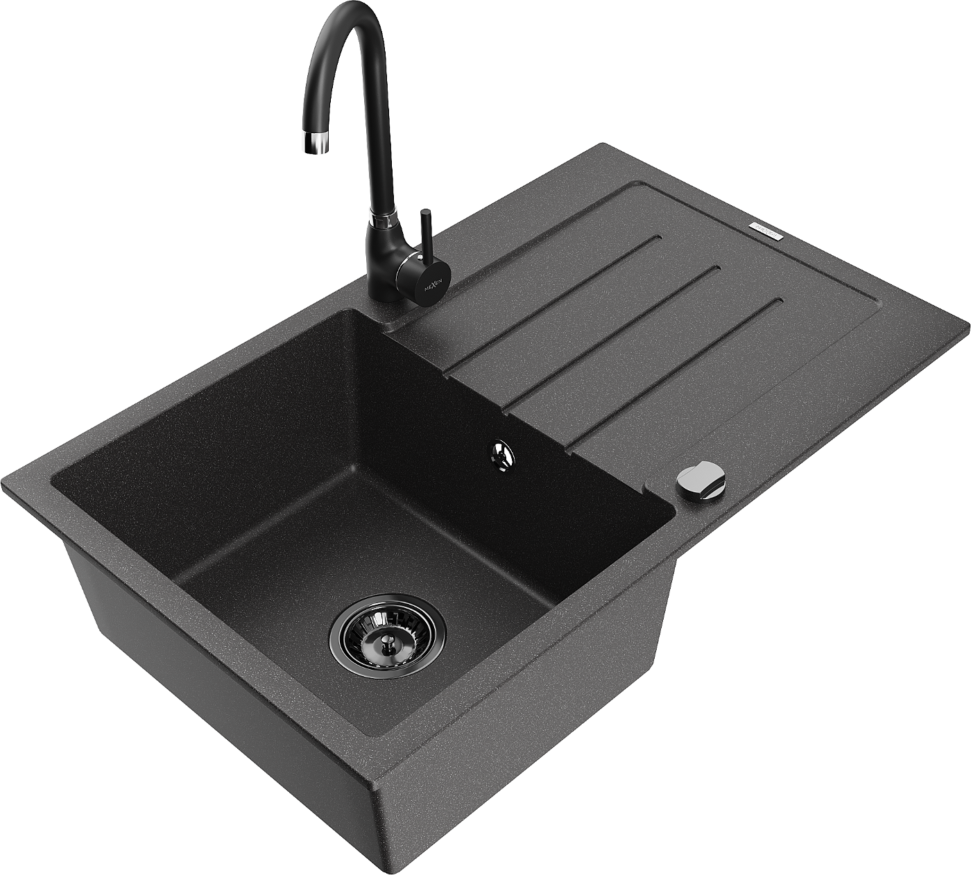 Mexen Bruno Granit-Spullsteen mat 1-Chamber mat Ofdrockung a Kichekraan Telma, schwaarz Gesprankelt - 6513-76-670200-70-B