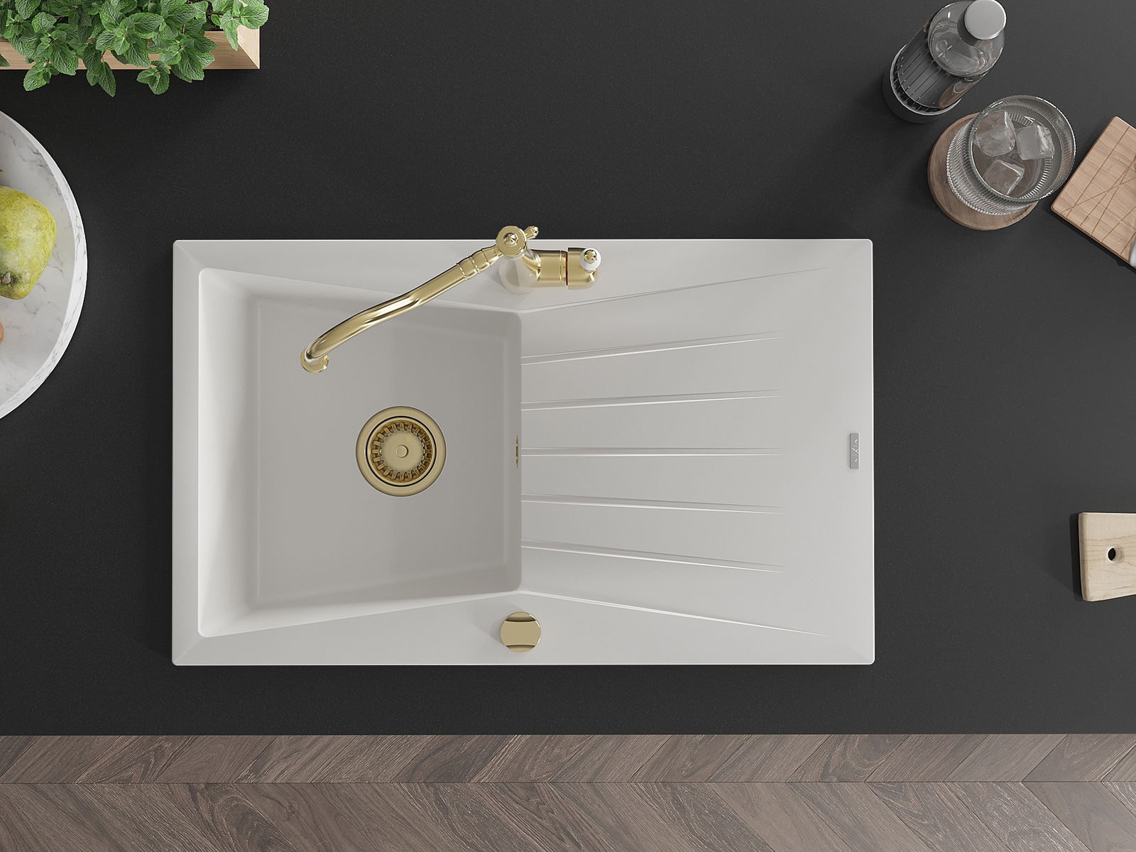 Mexen Cesar Granitspullutt mat enger Kummer mat Oflaaf an enger Kichbrunn Carla, wäiss - 6514-20-670700-50
