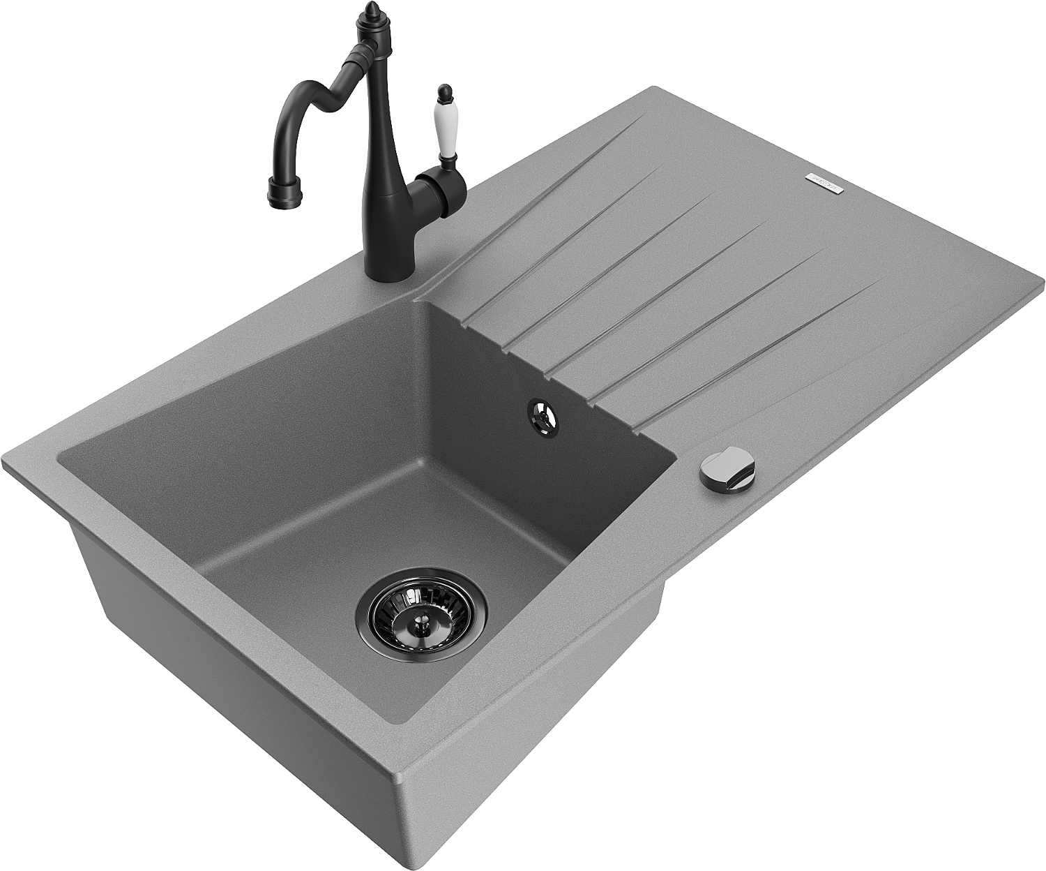 Mexen Cesar Granit Kichelenk 1-Kummer mat Ofdrëpsrack an Kichenbatterie Carla, gro - 6514-71-670700-70-B