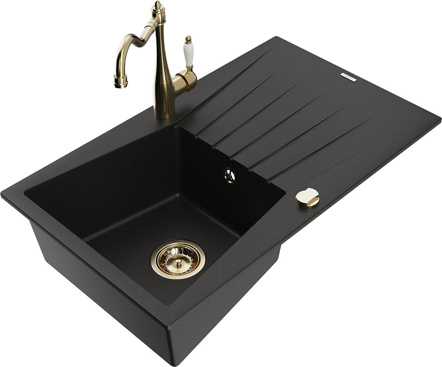 Mexen Cesar Granit Spullsteen mat enger Schoss an enger Kichenkraan Carla, schwaarz - 6514-77-670700-50