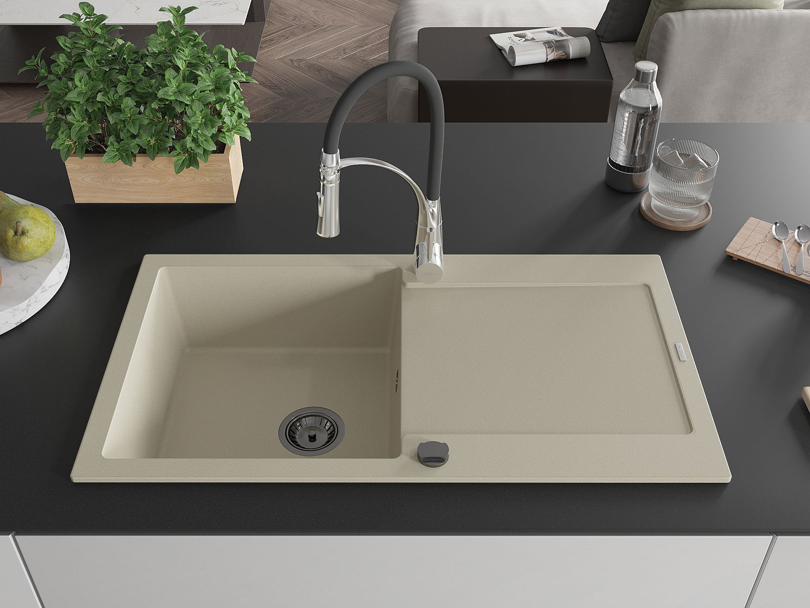 Mexen Leo Granit-Spullsteen 1-Kummer mat Oflaaf an Kichenbatterie Aster, beige - 6501-69-73450-07-B