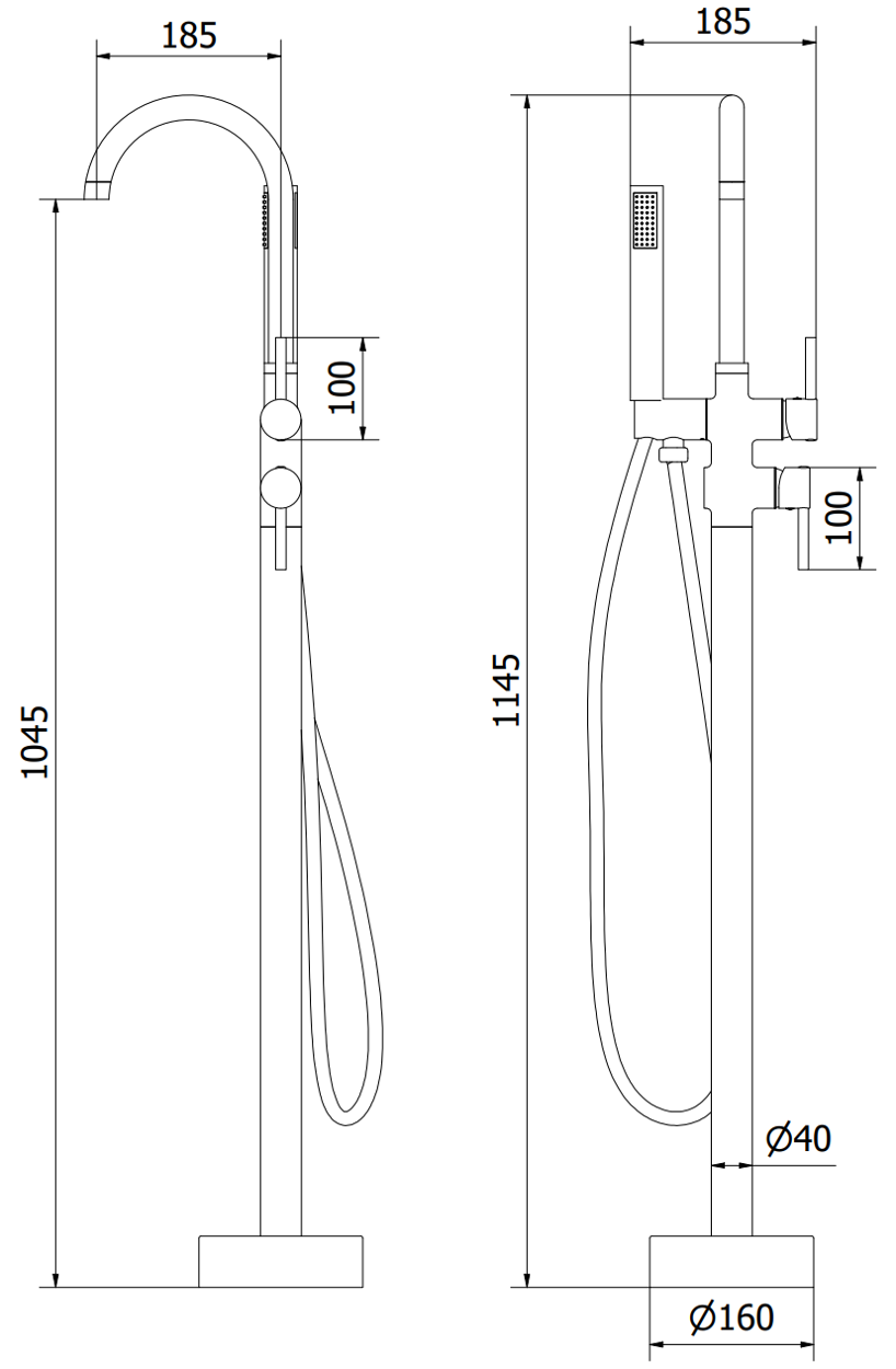 Héicht vum Waasserausfloss: 104,5 cm