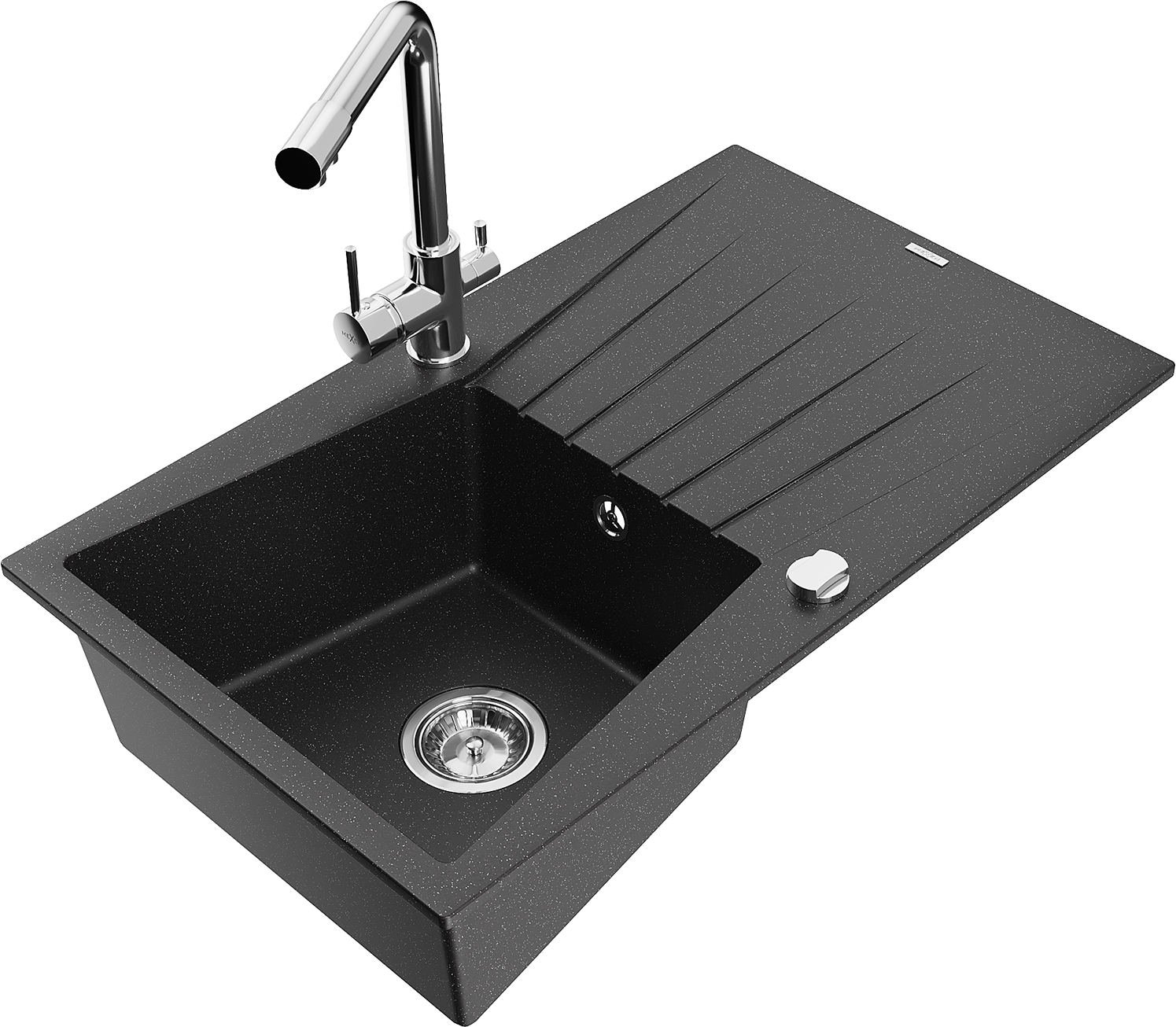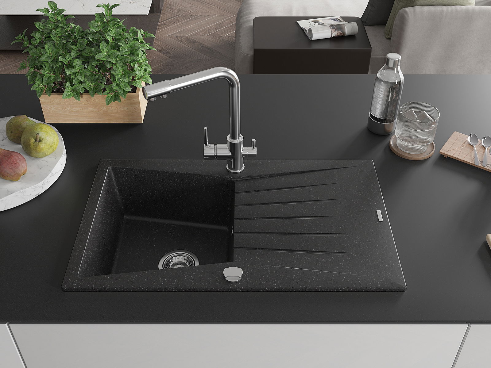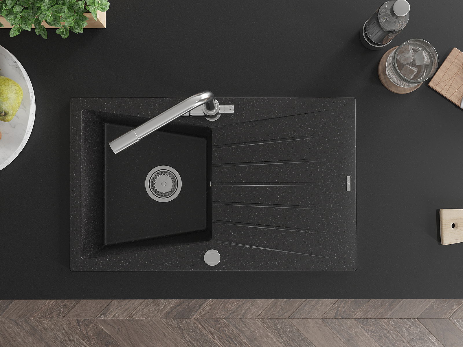 Mexen Cesar Granitspullstell mat enger Kummer, mat Ofleifläch a Kichenkran Duero, schwaarz/sëlwer Metalik - 6514-73-671600-00