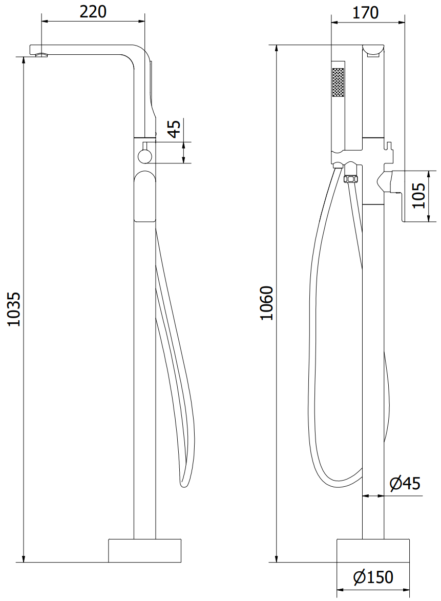 Waasserausfluss Héicht: 103,5 cm