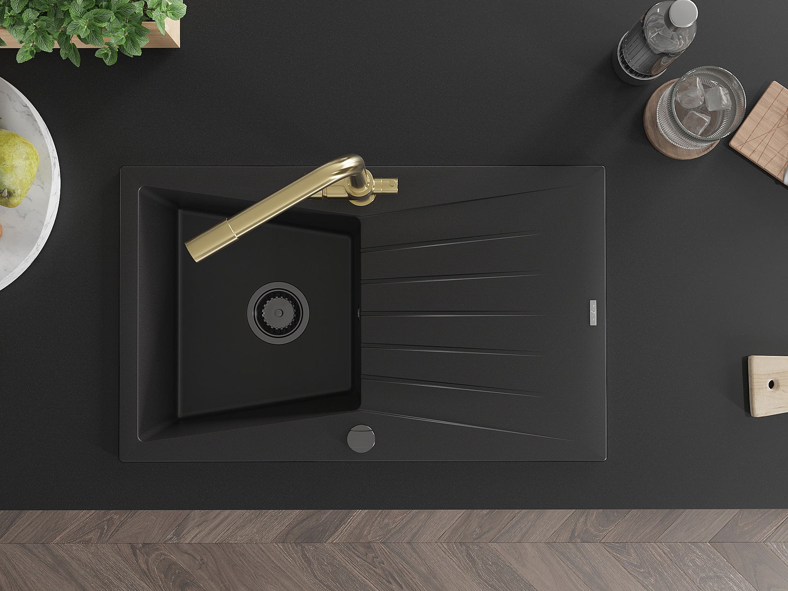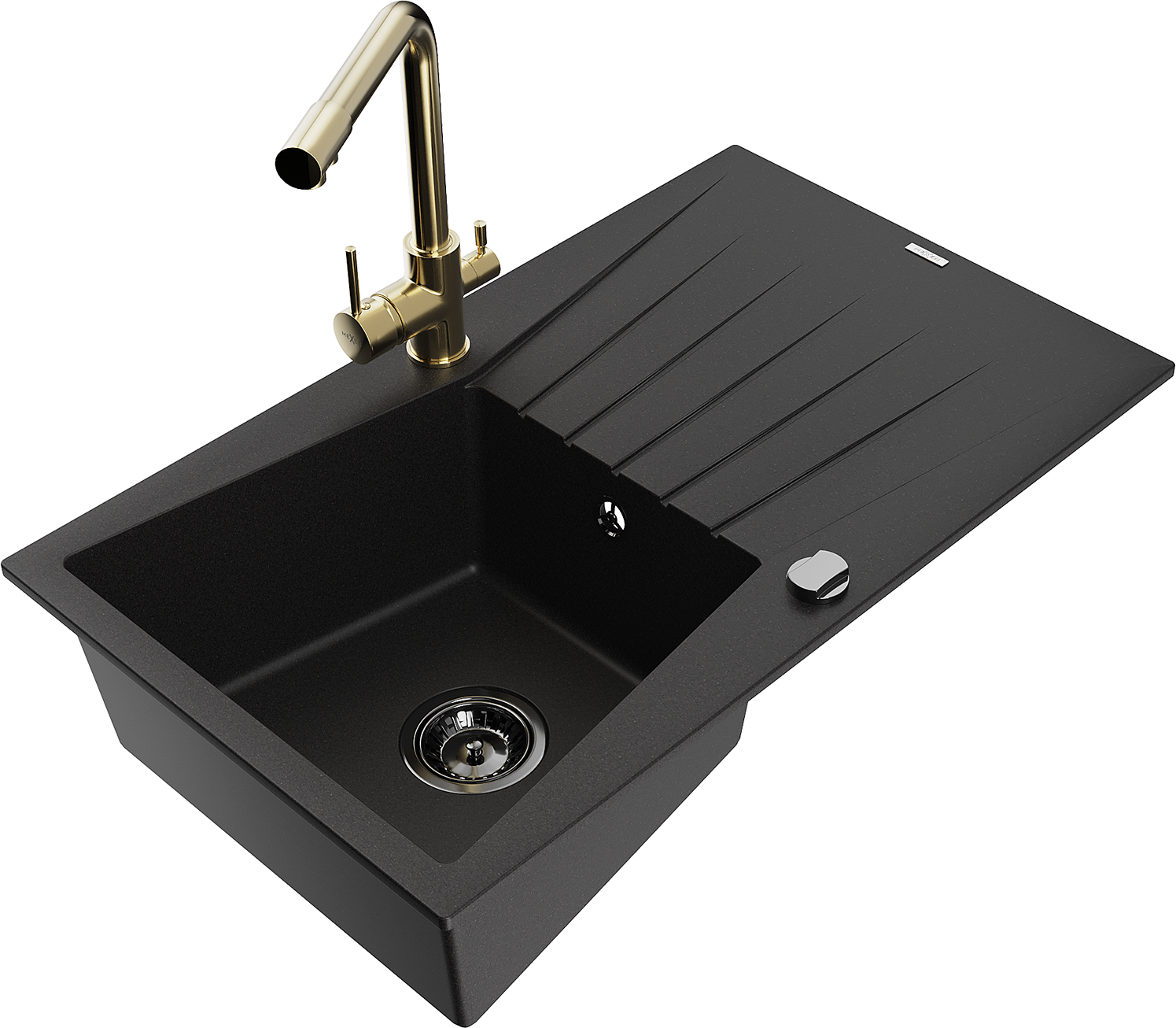 Mexen Cesar Granit-Spullbezéiung mat 1 Kammer mat Ofdrëpser a Kichenbatterie Duero, schwaarz - 6514-77-671600-50-B
