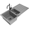 Den Ëmwäschbecken ass aus héichwäertege Granit gemaach. Et stellt eng elegant awer virun allem praktesch Ergänzung fir all Kichen duer, onofhängeg vun hirem Stil. Déi héich Qualitéit an Haltbarkeet vum Granit suergen fir méi järelaang Benotzung.